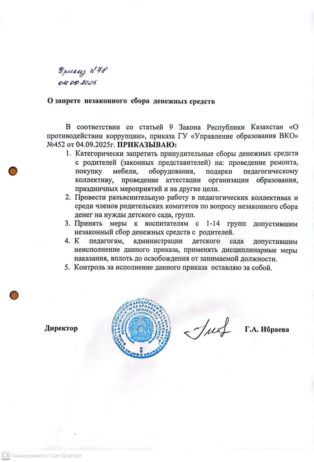 Приказом № 60 от 22 января 2021 года директора КГУ «Детский сад № 62 для детей с напрушениями речи» акимата города Усть-Каменогорска считать продолжающей работать в должности директора КГУ «Детский сад № 62 для детей с нарушениями» речи отдела образования по городу Усть – Каменогорску управления образования ВКО. Директор Ибраева Гульден Ахметкалиевна имеет 2 высших образования (УКПИ «Учитель музыки и пения, методист, воспитатель», ВКГУ «Дефектология»), стаж работы 26 лет, в данном учреждении 6 лет.