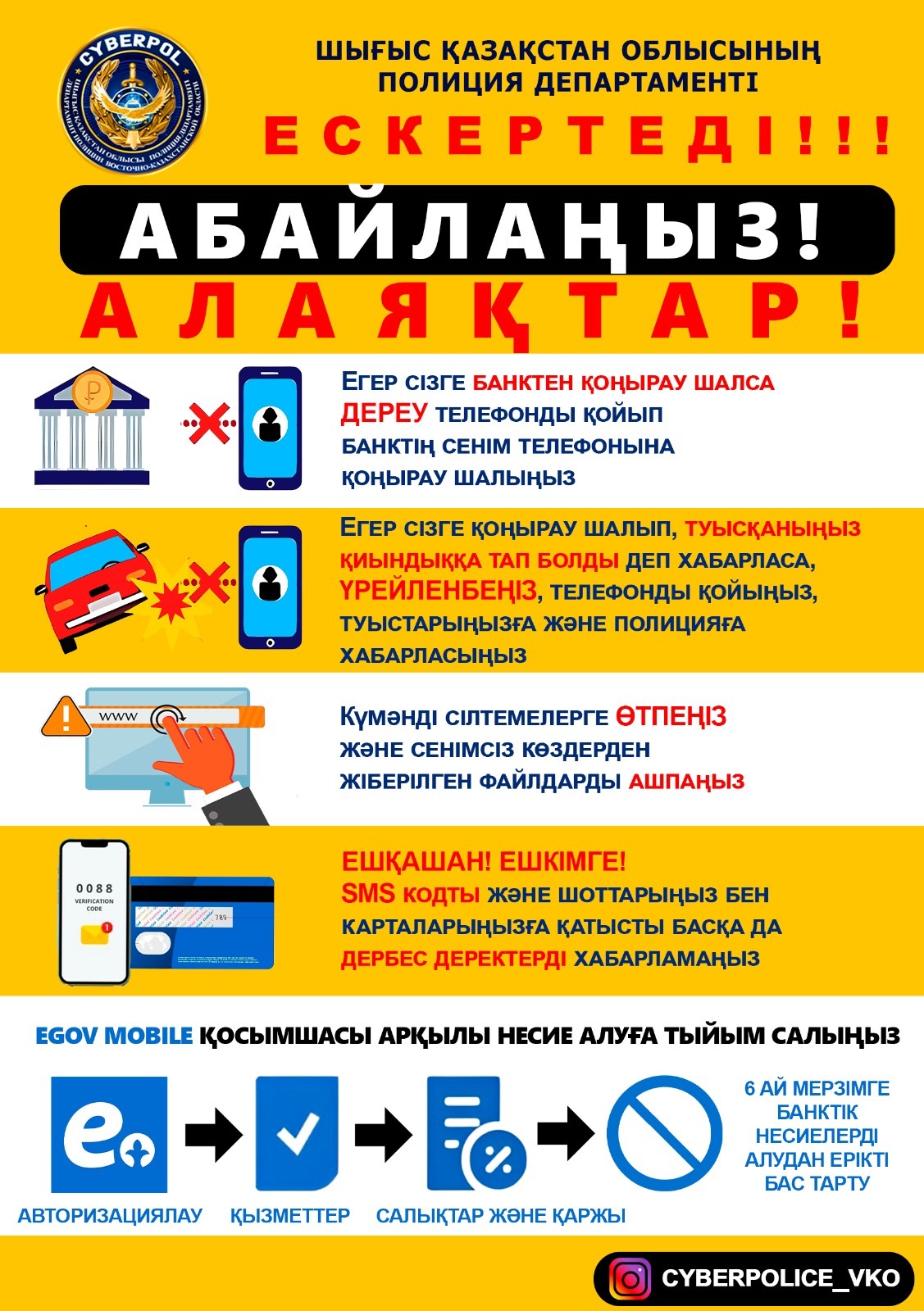 2024 жылдың 6 мамырында Шығыс Қазақстан облысы білім басқармасы Өскемен қаласы бойынша білім бөлімінің «№62 арнайы балабақшасы» коммуналдық мемлекеттік мекеменің директоры Г.А.Ибраева балабақша ұжымымен «Абайлаңыз, алаяқтар!» тақырыбында киберқылмыстардың алдын алу іс-шараларын өткізді.