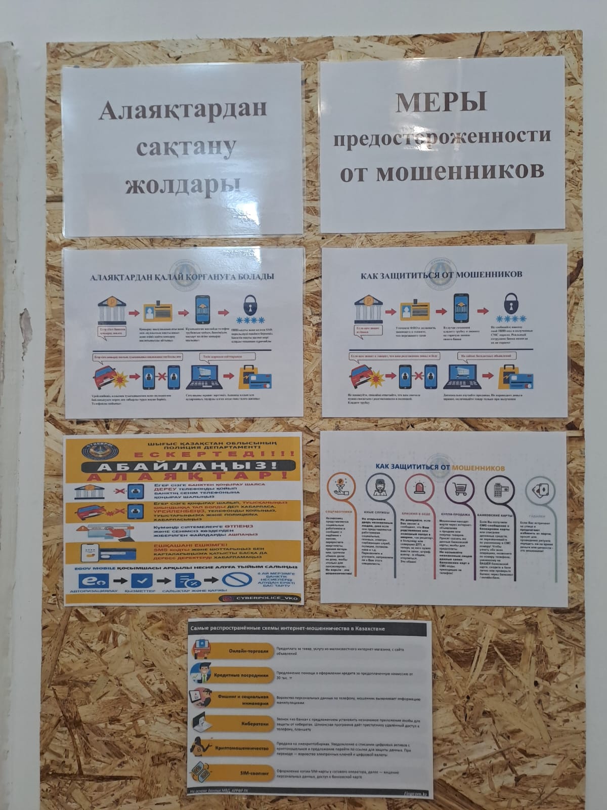 Іс-шара алаяқтардың жиі қолданатын әдістерін, өзіңізді және жинақ ақшаңызды қалай қорғауға болатынын хабарлау мақсатында өткізілді. Ол банк карталарымен, интернет-дүкен сайттарымен және онлайн несиелермен алаяқтық туралы айтты. Ол ешбір жағдайда шоттарыңыз бен банк карталарыңыз туралы жеке ақпаратты беруге болмайтынын, күмәнді интернет-дүкендерде сатып алмау керектігін және тауарларды шығару бөлімдері бар сенімді сайттарды ғана пайдалану керектігін түсіндірді. Балабақша ұжымы Инстаграм cyberpolice_vko киберқылмыстың алдын алуға жазылды. Сондай-ақ балабақшада «Алаяқтардан сақтану шаралары» бұрыш безендендірілді, онда әрбір адам алаяқтардың әрекетінен қорғану жолдары туралы ақпарат ала алады.