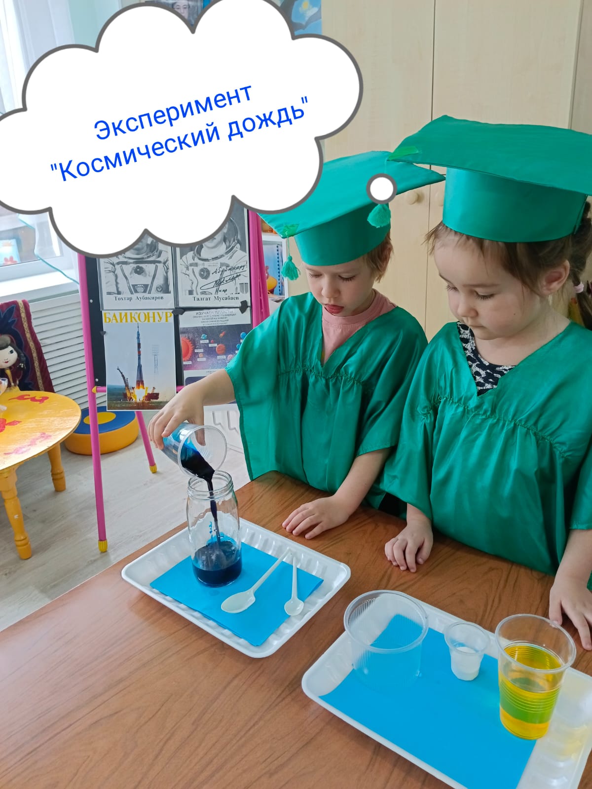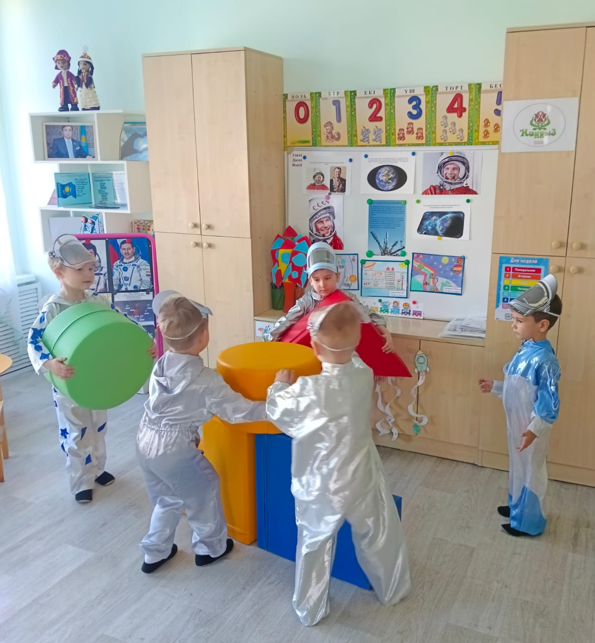 Ойындар ғарыш туралы білімдерін бекітуге және балалардың шығармашылық ойлауын дамытуға көмектесті. Балалар ойын түрінде құрылыс жинақтарынан ғарыш станцияларын құрастырды, қағаздан ұшақтарды ұшырды және танымдық викториналар ойнады.