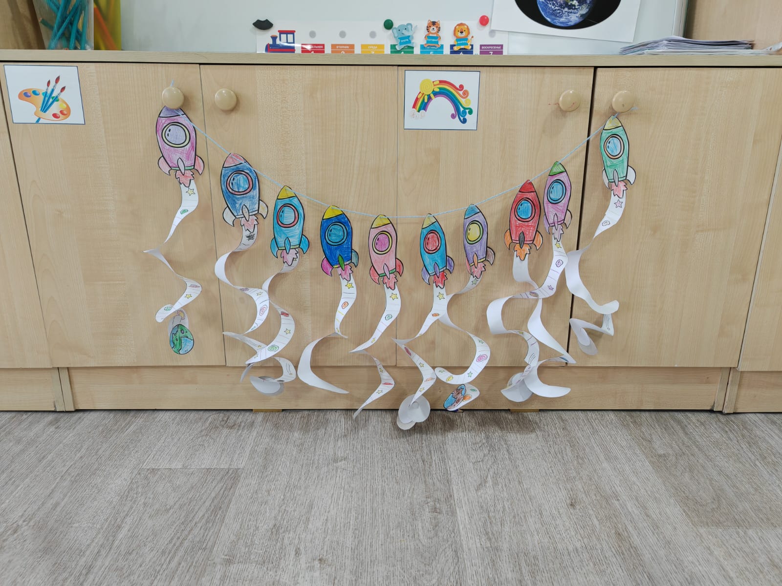 Шығармашылық балалар үшін өздерінің көркемдік қабілеттері мен қиялдарын көрсетудің тамаша мүмкіндігі болды. Олар қағаздан, картоннан және әртүрлі сынықтардан зымырандар, планеталар мен ғарыштық пейзаждар жасады.