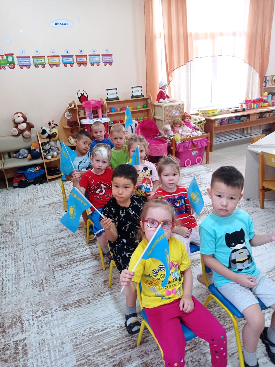 Бұл іс-шаралардың мақсаты мектеп жасына дейінгі балалардың бойында азаматтық, патриоттық негіздерін қалыптастыру, туған жерге деген мақтаныш сезімін ояту, халық дәстүрін құрметтеу.Балабақшаның барлық жастағы топтарында «Астанаға саяхат» рөлдік ойындары өткізілді, балалар ойында әртүрлі жерлерге саяхат жасады. «Қазақ елі» монументінің жанындағы Тәуелсіздік алаңында 1986 жылғы Желтоқсан оқиғасына қатысушылардың рухына тағзым етіп, Тәуелсіз Қазақстанның естелік аллеясын аралап шықты. Балалар ҚР Ұлттық музейінде қандай көрмелер өтіп жатқанын білді. Біз «Ұлттық валюта мұражайында» болдық, онда теңгенің тарихы туралы көп нәрсе білдік. Саяхат соңында балалар кәдесый дүкеніне барды, онда барлығы кәдесый ретінде ұлттық кәдесыйды таңдады. Саяхаттан оралған балалар ортақ дастарханда өздерінің эмоциялары мен әсерлерімен бөлісті. Іс-шараға топ мұғалімдері жауапты болды.Қазақ тілі пәнінің мұғалімдері З.А.Кеңесбаева, З.Т.Адамова, Қ.А.Ахметжанова «Менің елім Қазақстан» ересек топтарында тақырыптық викторина өткізді. Балалар еліміздің астанасы, мемлекеттік рәміздері, тарихы мен мәдениеті туралы сұрақтарға жауап беріп, мақал-мәтел, тақпақ, өлең айтты.Дайындық топтарында «Тәуелсіздік тірегім» тақырыбында тақырыптық сабақтар өткізілді. Тақырыптық сабақтарда балалар Қазақстан Республикасының Тәуелсіздік күніне арналған патриоттық әндер айтып, өлеңдер оқыды. Баршаңызға денсаулық, бақыт және Отанымыз – Қазақстан Республикасына гүлдену тілейміз!