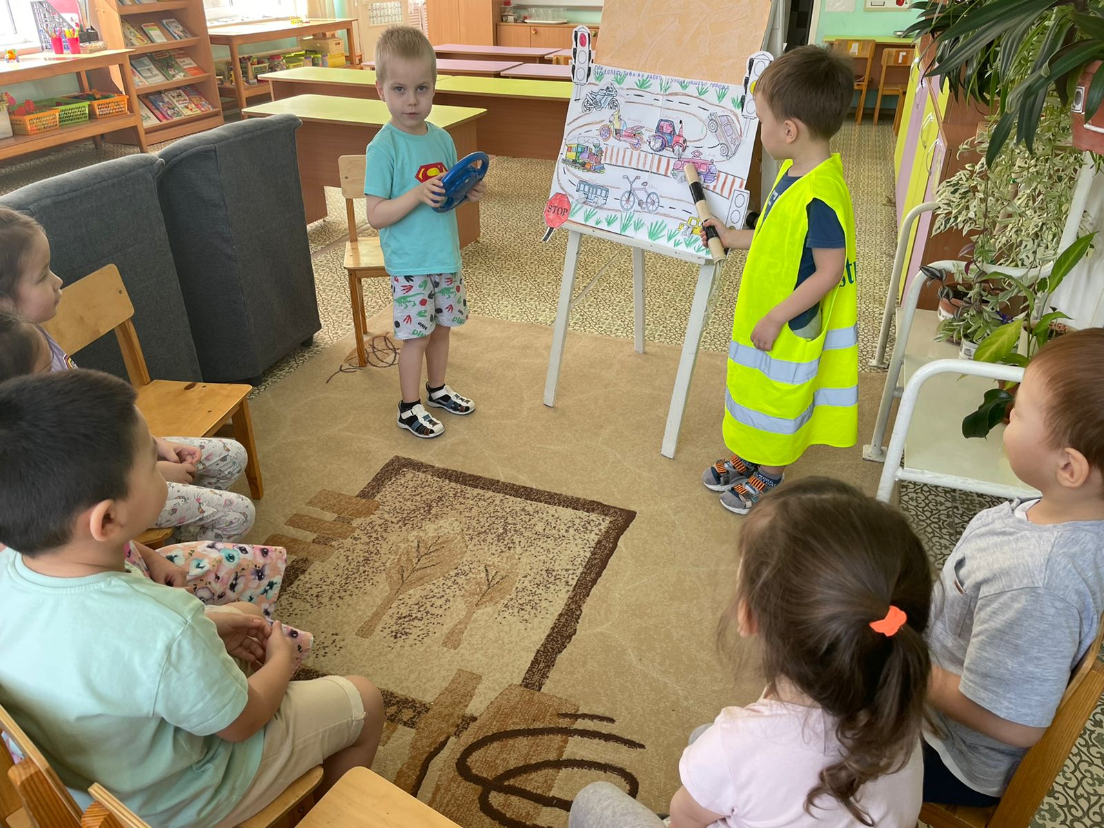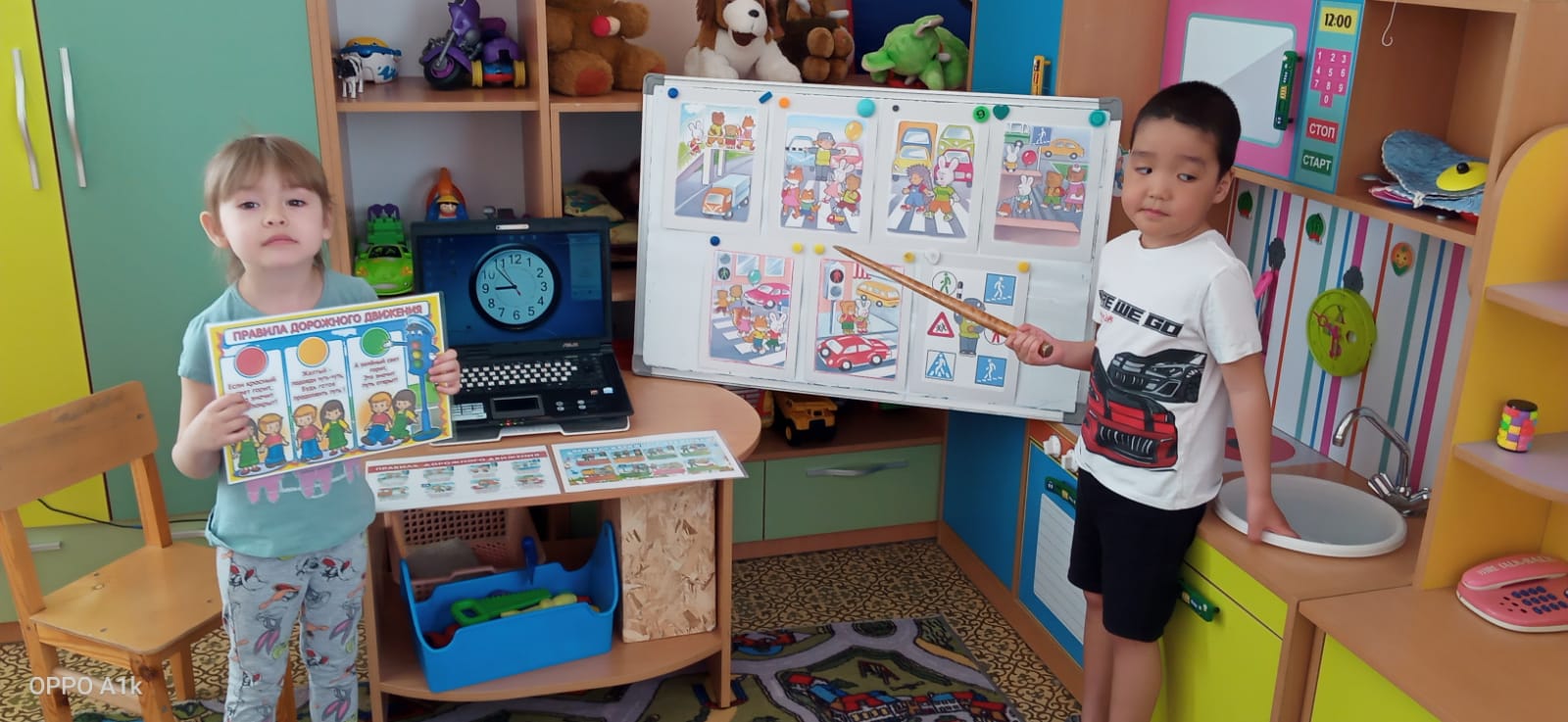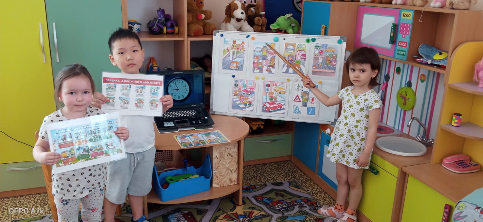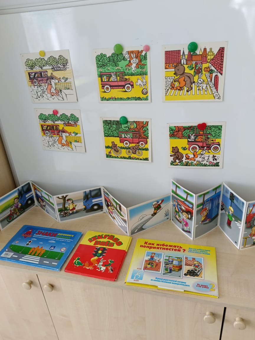 Балаларға арналып дамытушылық әсер ететін және танымдық ынталандыратын, балалардың жолдағы мінез-құлық мәдениеті туралы білімдерін қалыптастыратын, олардың өмірі мен басқа адамдардың өмірі үшін жауапкершілікке тәрбиелейтін көрнекі материалдар жасалды.