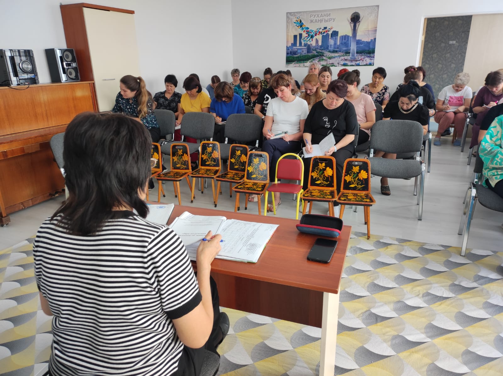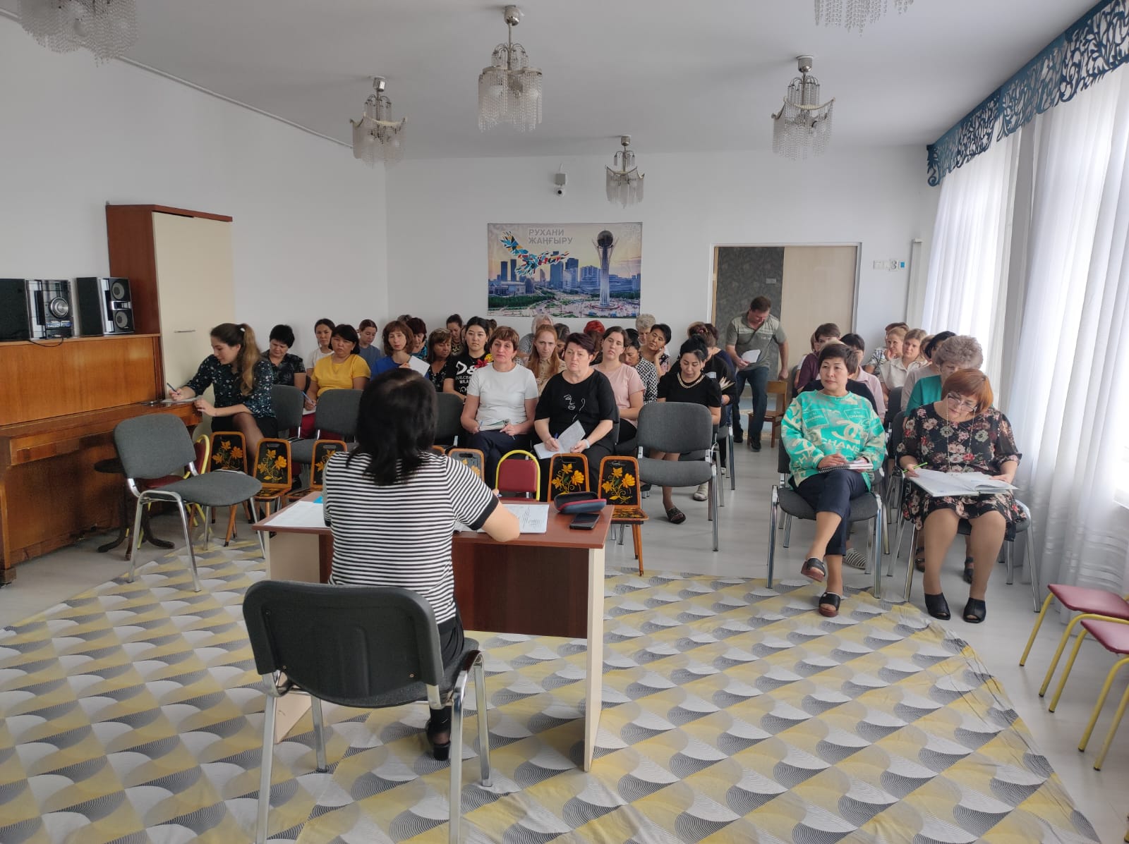 Сабақты балабақша директоры Г.А. Ибраева өткізді, ол эвакуация, жарылғыш құрылғы болуы мүмкін күдікті затты табу, телефон арқылы, жазбаша түрде қауіп төнген кезде әрекет ету, кепілге алу, ату, ғимараттың жарылуы туралы ақпарат алу кезіндегі маңызды мәселелер мен әрекеттерді талдады. Оқу сабағына балабақшаның 90 қызметкері қатысты.