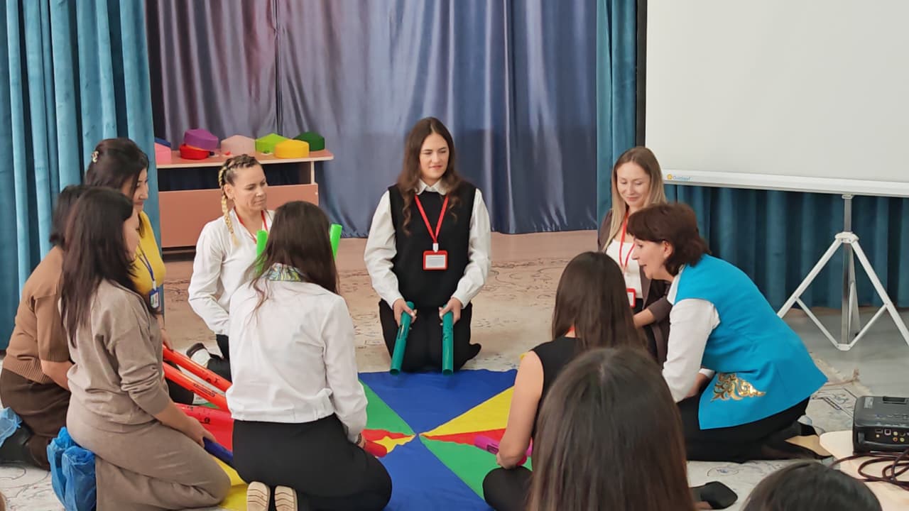 Педагогтар «Әдістемелік көрмесіне» барып, нейропсихологиялық әдістер, музыкалық нейроритмика және ұлттық ойындарды түзетушілік жұмыста қолдану бойынша шеберлік сабақтарына қатысты.