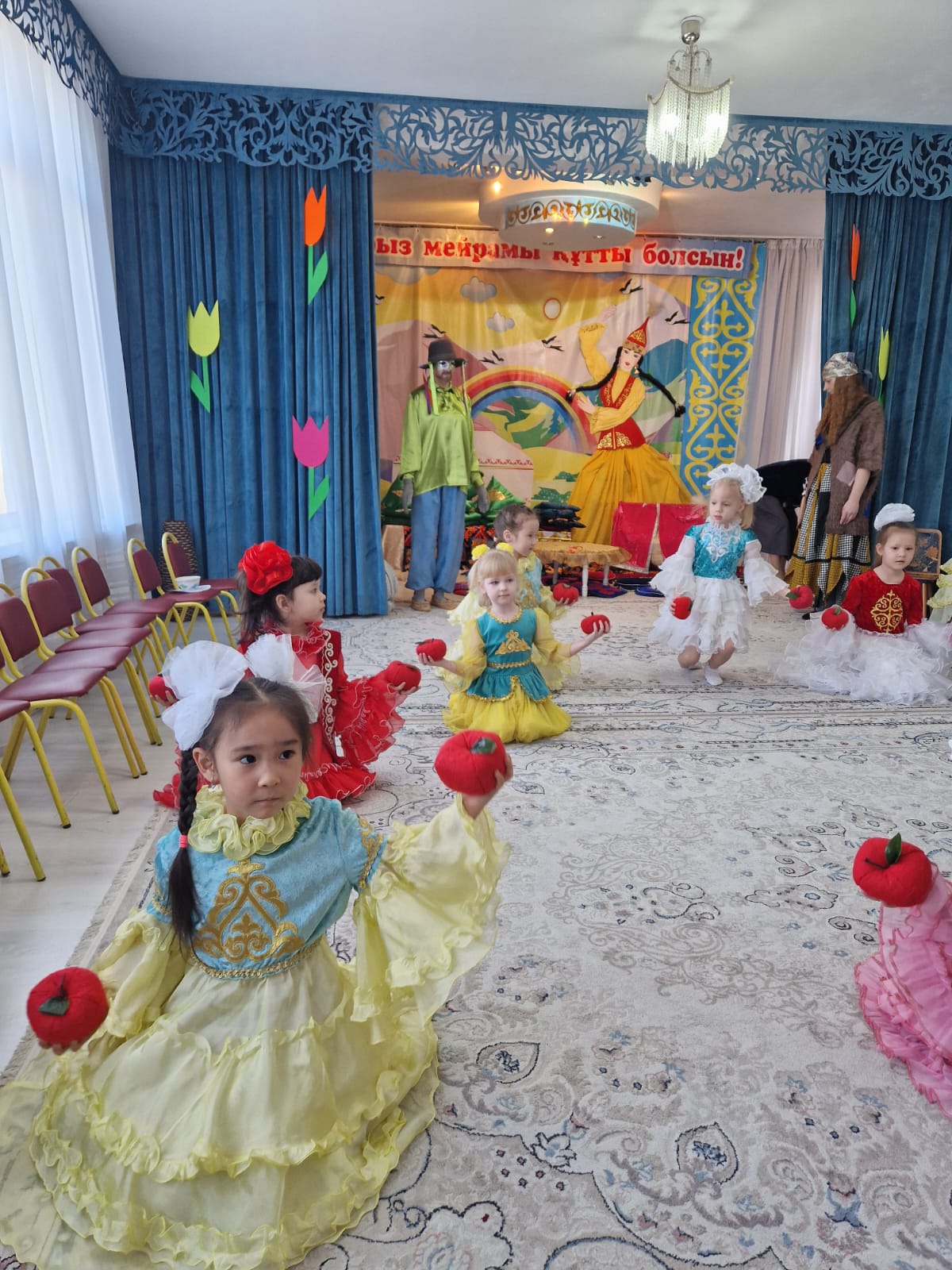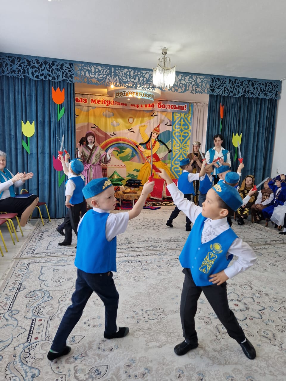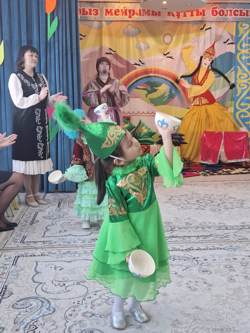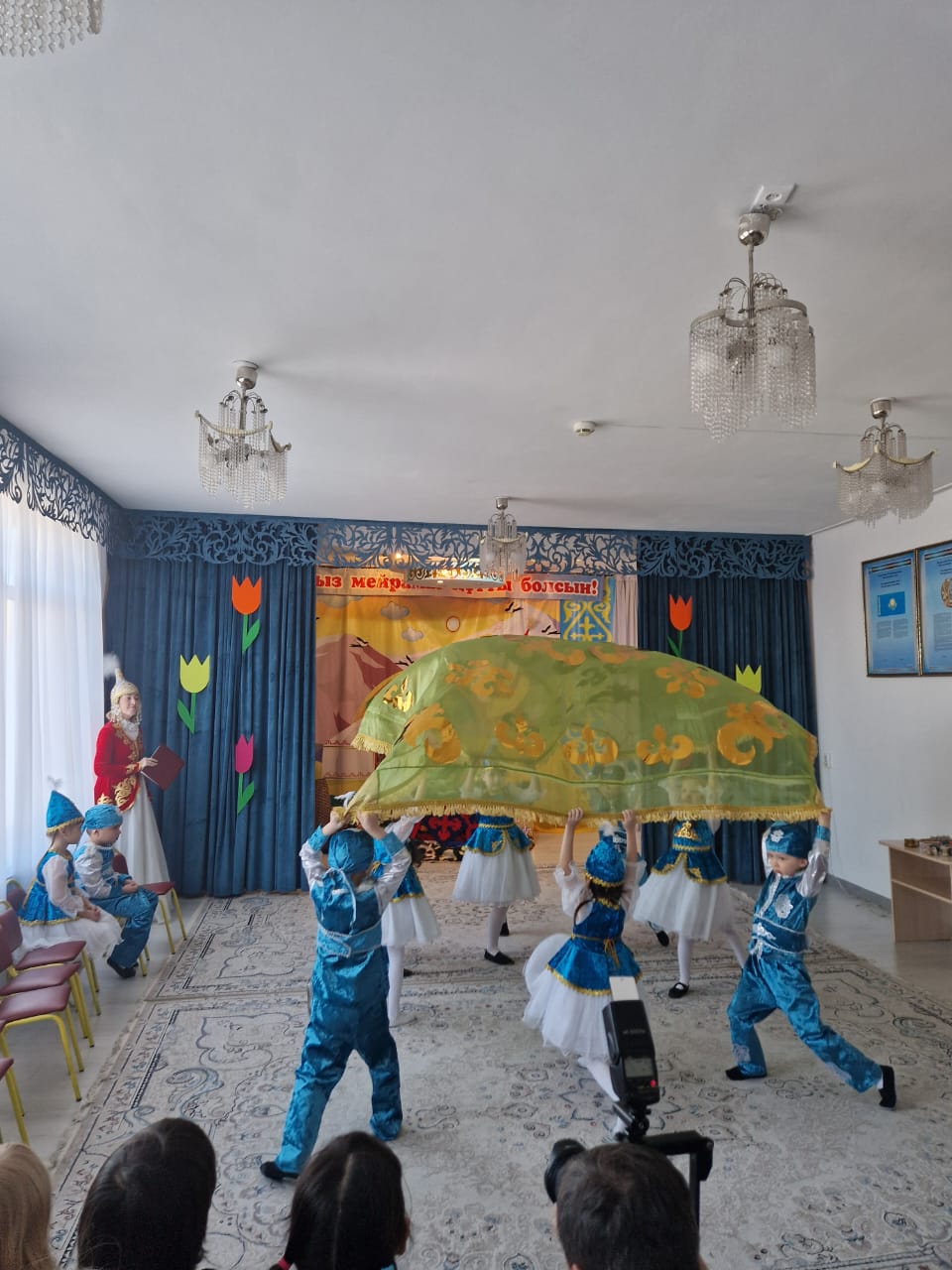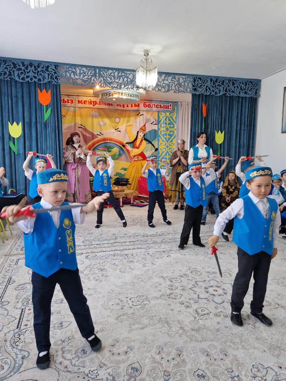 Наурыз-көктем, күн мен түннің теңелу, табиғаттың жаңару мерекесі. Наурыз-жыл басы. Шығыс елдері үшін Наурыз-бірлік, бейбітшілік, еңбек, көктем, жақсылық, бақыт мерекесі. Қазақ халқының дәстүріне сүйене отырып, іс-шарада тәрбиеленушілердің орындауындағы әндер, өлеңдер мен билер шырқалды. Барлық ережелерді сақтай отырып, «Шаш өру дәстүрі», «Бесікке салу» «Тұсау кесу» рәсімдері өткізілді. «Тенге алу», «Арқан тарту», «Гүл теру» ұлттық ойындары өткізілді. Наурыз мерекесі күндері іс-шарада дастархан жайылды, ол үйдегі байлық пен молшылықты бейнеледі. Дәстүрді сақтай отырып, іс-шарада Қыдыр ата батасы берілді. Аталған іс-шараға ата-аналар, балабақша қызметкерлері қатысты