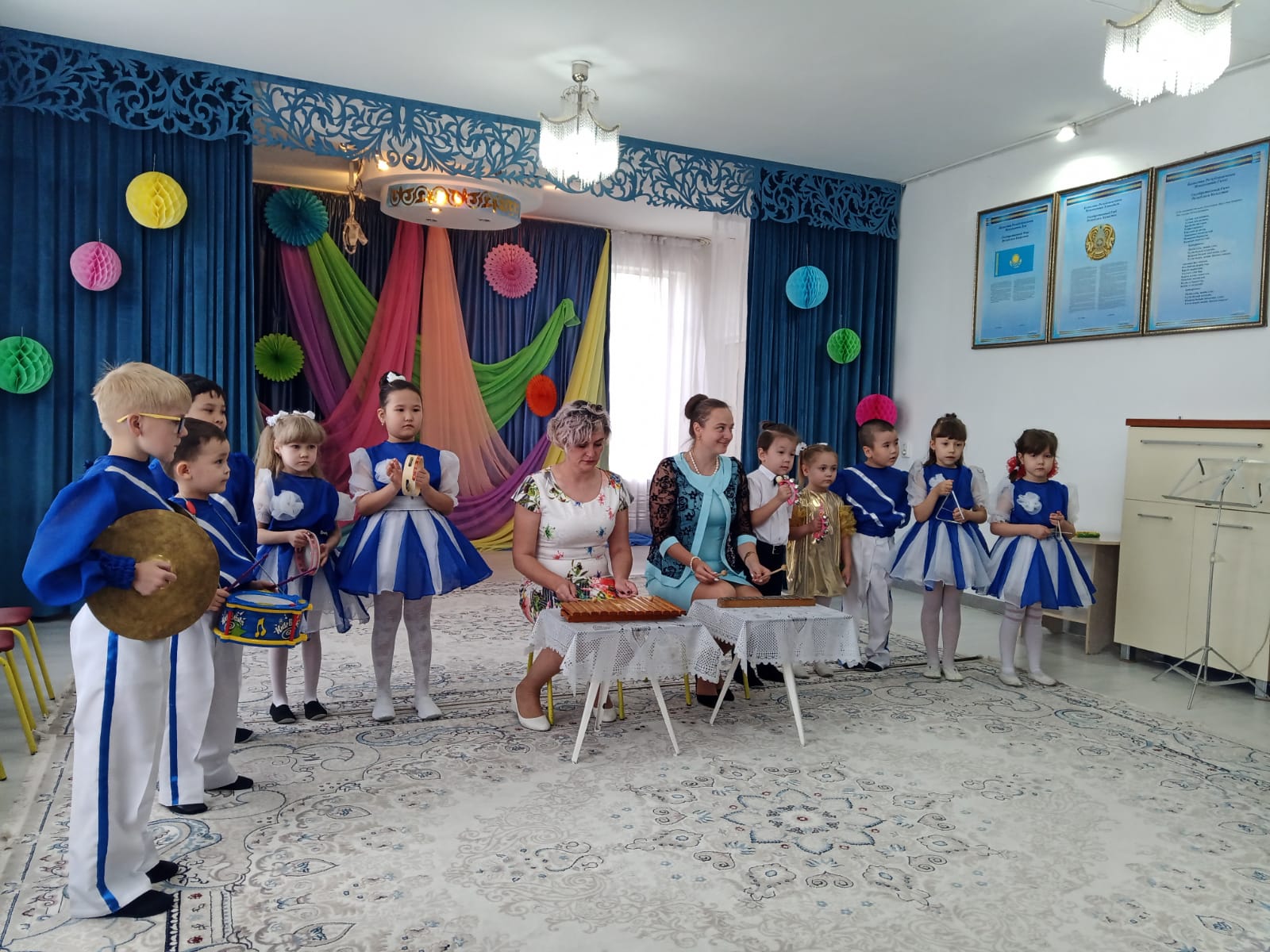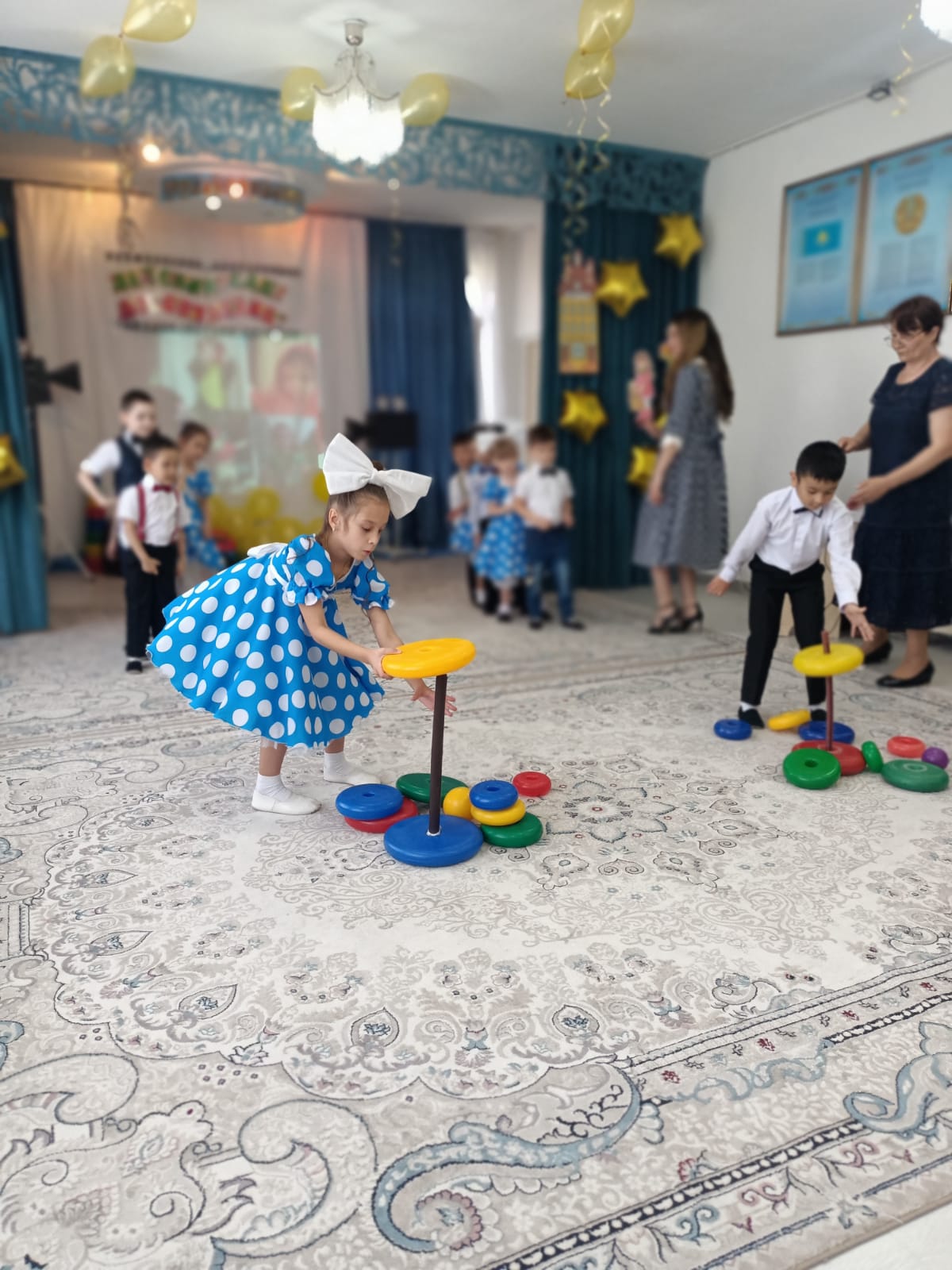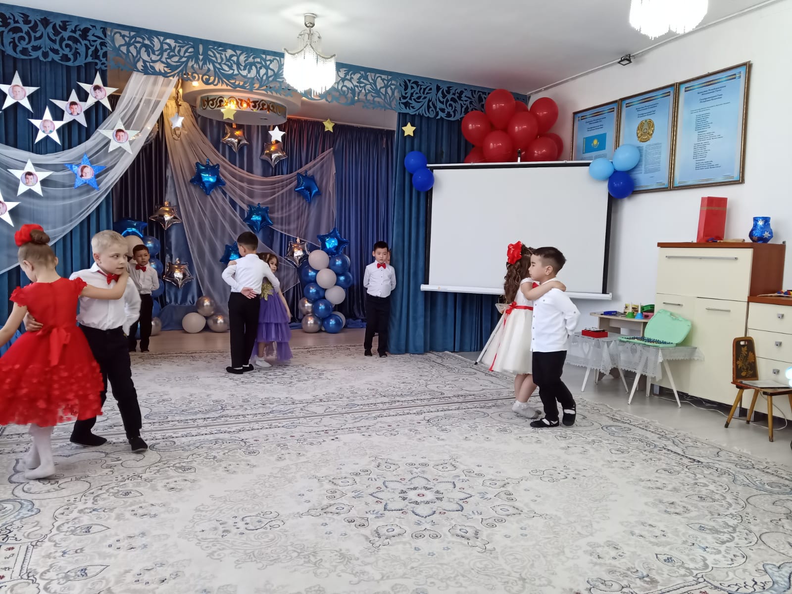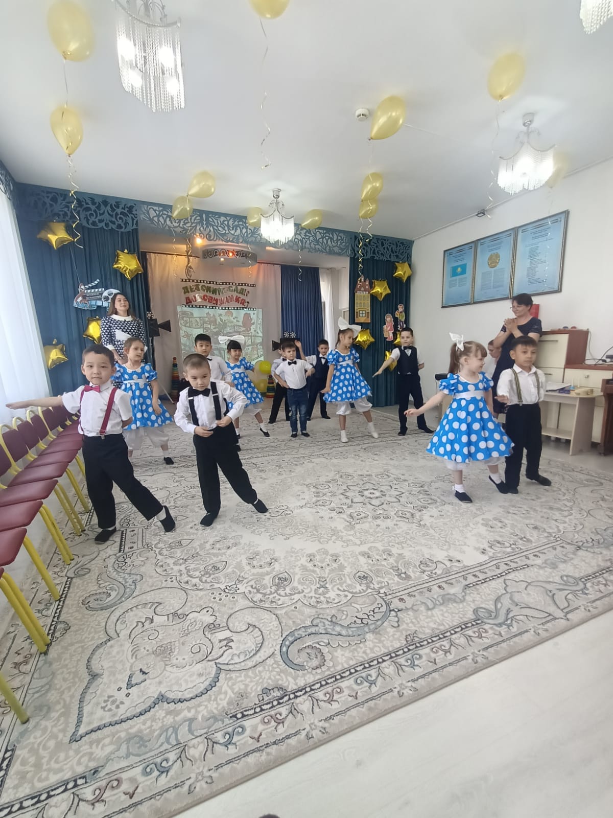 Мерекеде балалар өлең оқып, ән шырқады, ойындар болды және әрине балабақшамен қоштасу вальсі болды. Қонақтардың келуі таңқаларлық болды: кішкентай ханзада, сайқымазақ Бим Бом, Білім Ханшайымы, Фиксиктер және т.б. балалар «балабақшаның» керемет әлеміне тағы бір рет ене алды.