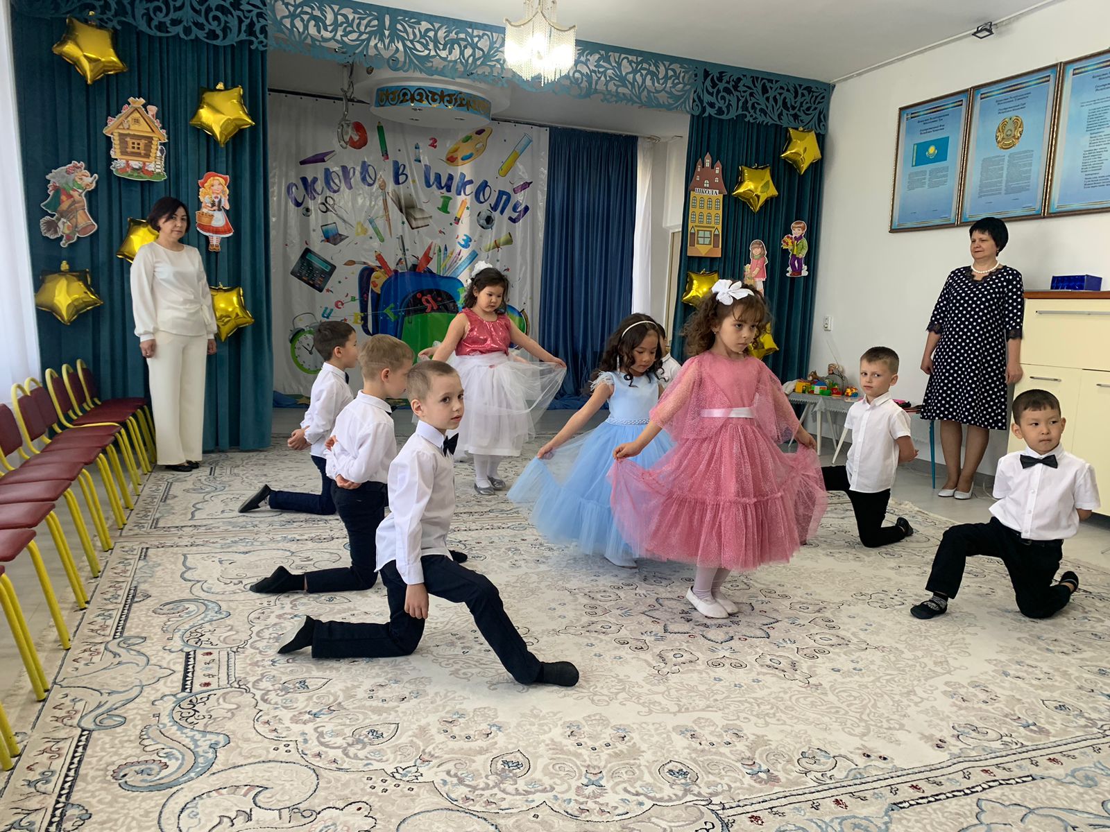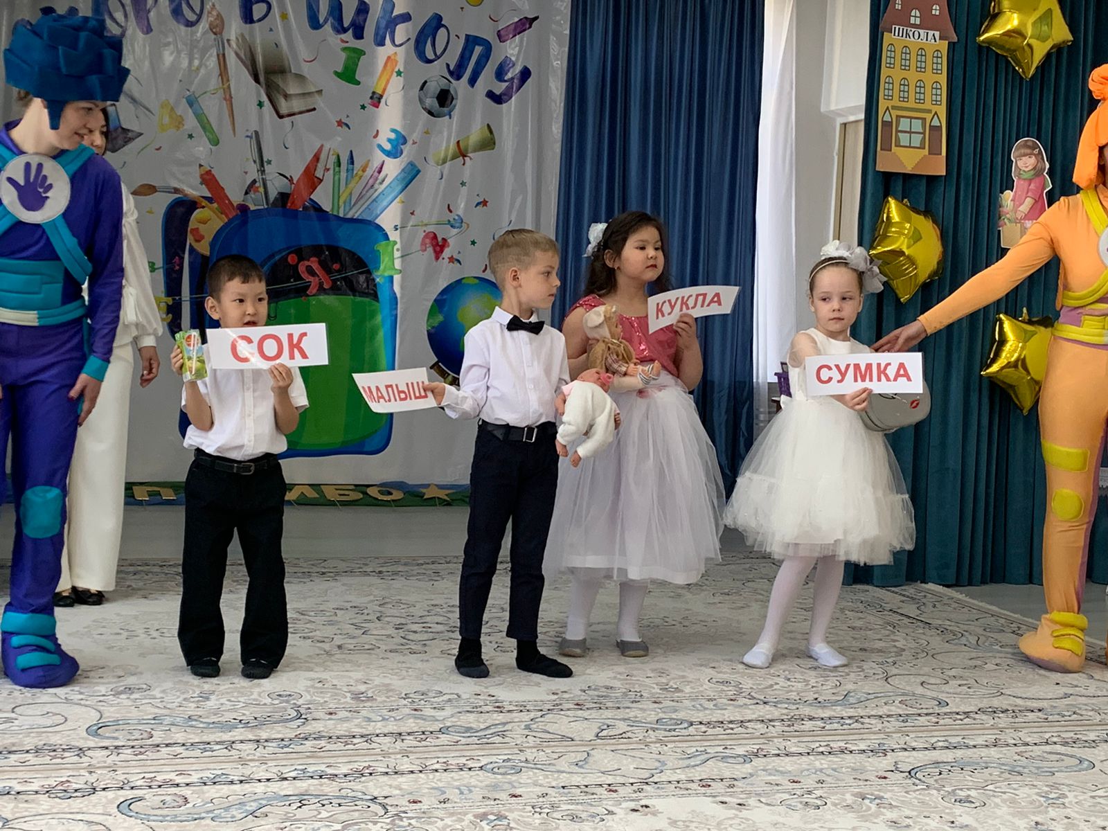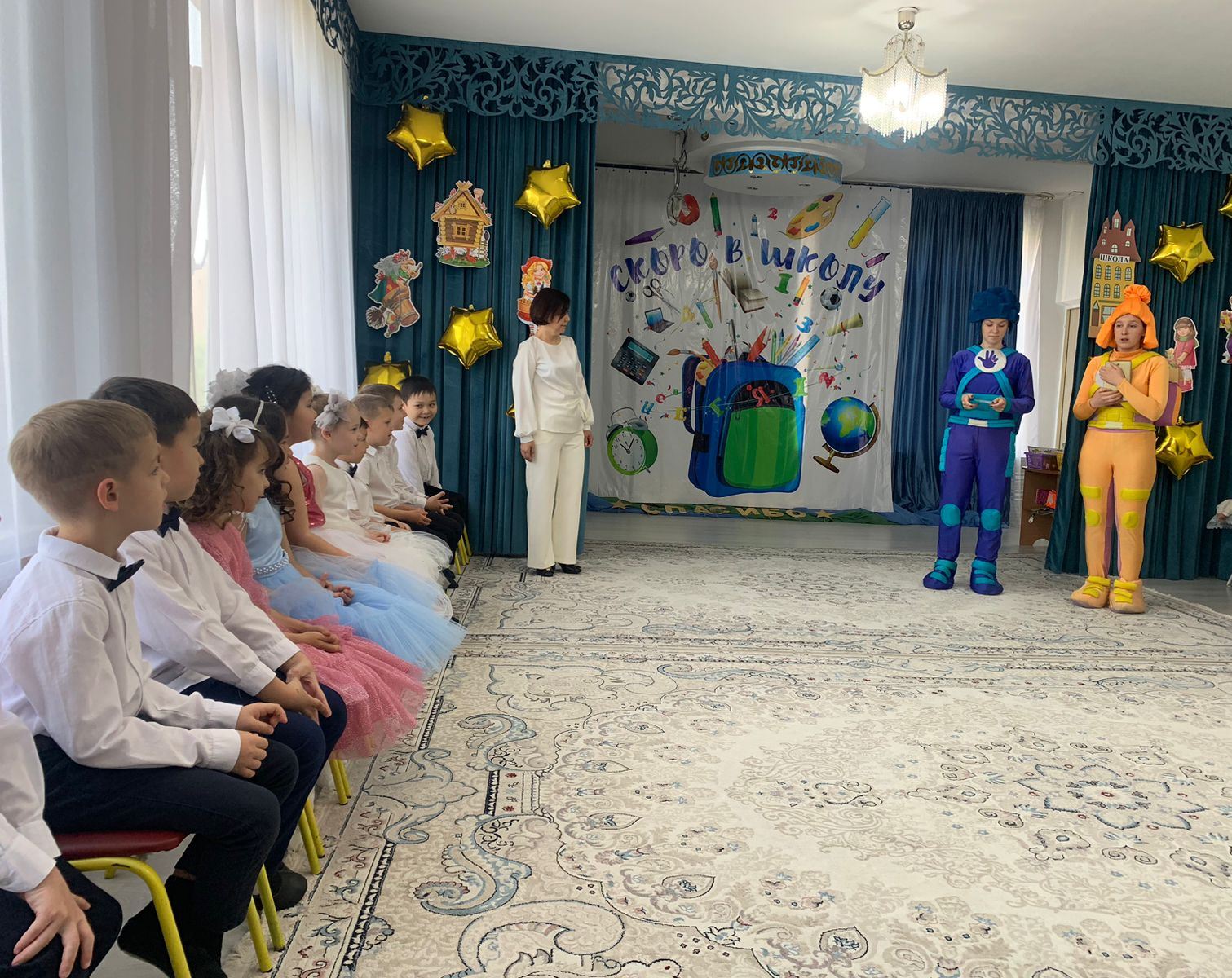 Біздің балалар балабақшамен қоштасып, өмірдің жаңа кезеңіне – мектепке түсуге дайындалуда. Артында белгісіз, шешілмеген, таңғажайып ашылулар әлеміне қызықты саяхаттарға толы күндер қалды. Алда ересек мектеп әлеміне апаратын қиын жол бар. Жыл сайын біздің балабақша мектепке қарапайым мектепке дейінгі балаларды емес, нағыз талантты және керемет жұлдыздарды шығарады. Топтағы әрбір бала - кішкентай жұлдыз. Әрқайсысы талантты және ерекше. Біз оларды осы жылдар ішінде жақсы көрдік. Бүгін біз оларды мақтанышпен және үмітпен мектепке шығарып саламыз.