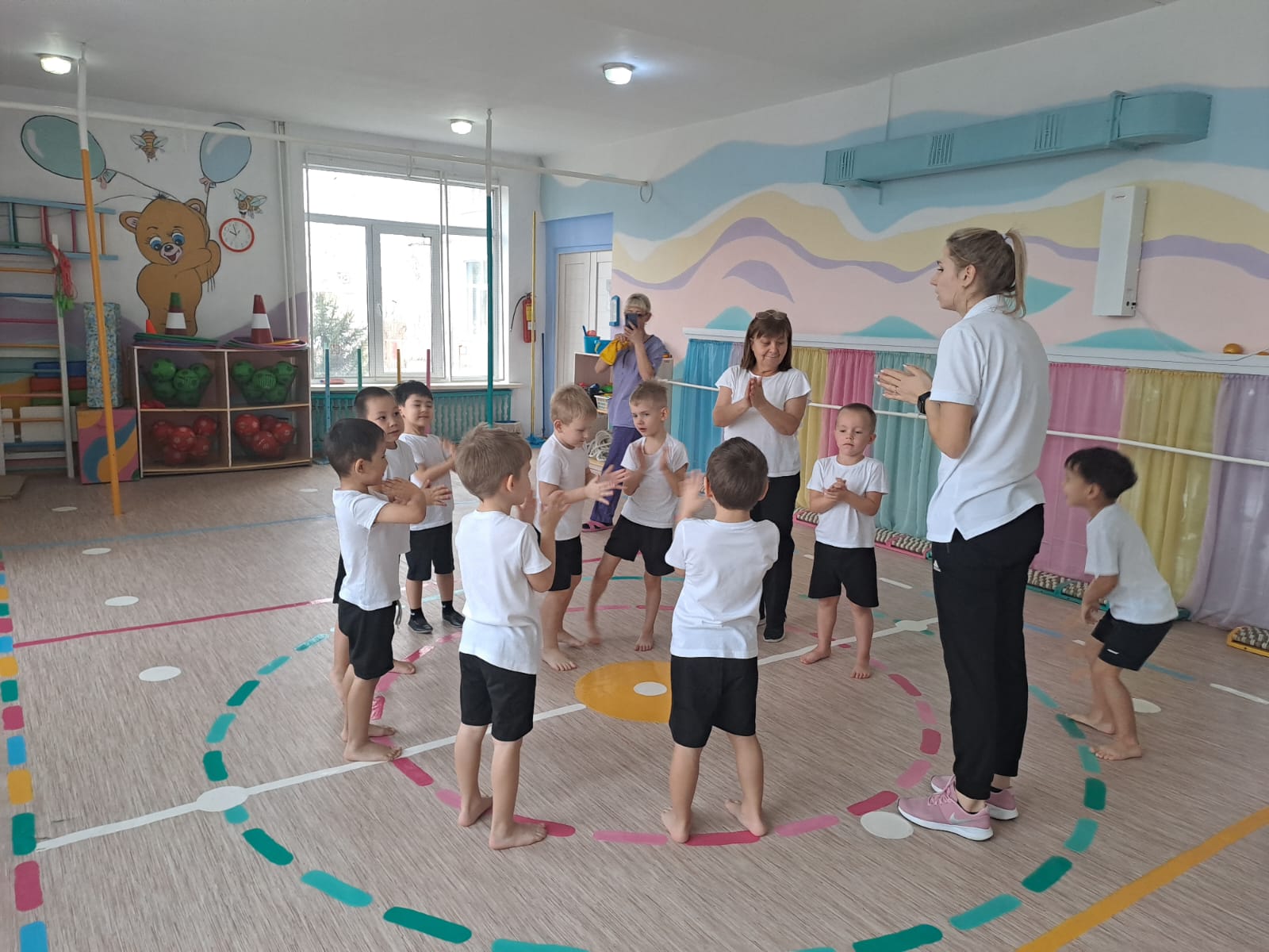 20 қарашада ШҚО білім басқармасы Өскемен қаласы бойынша білім басқармасының «№62 арнайы балабақшасы» КММ-де «Дене шынықтыру еліне саяхат» спорттық ойын-сауық квест ойыны өтті. Оған «Почемучки» және «Росточек» топтарының балалары қатысты. Балалар ойынының басында дене шынықтыру нұсқаушысы Геберт Е.В. мені «Дене шынықтыру» еліне саяхатқа шақырды. Елге кіру үшін балалар сынақтан өтуі керек еді. Алғашқы сынақ музыкаға гимнастика болды. Балалар қимылдарды ықыласпен орындап, орындарынан секіріп, көңілді биледі.