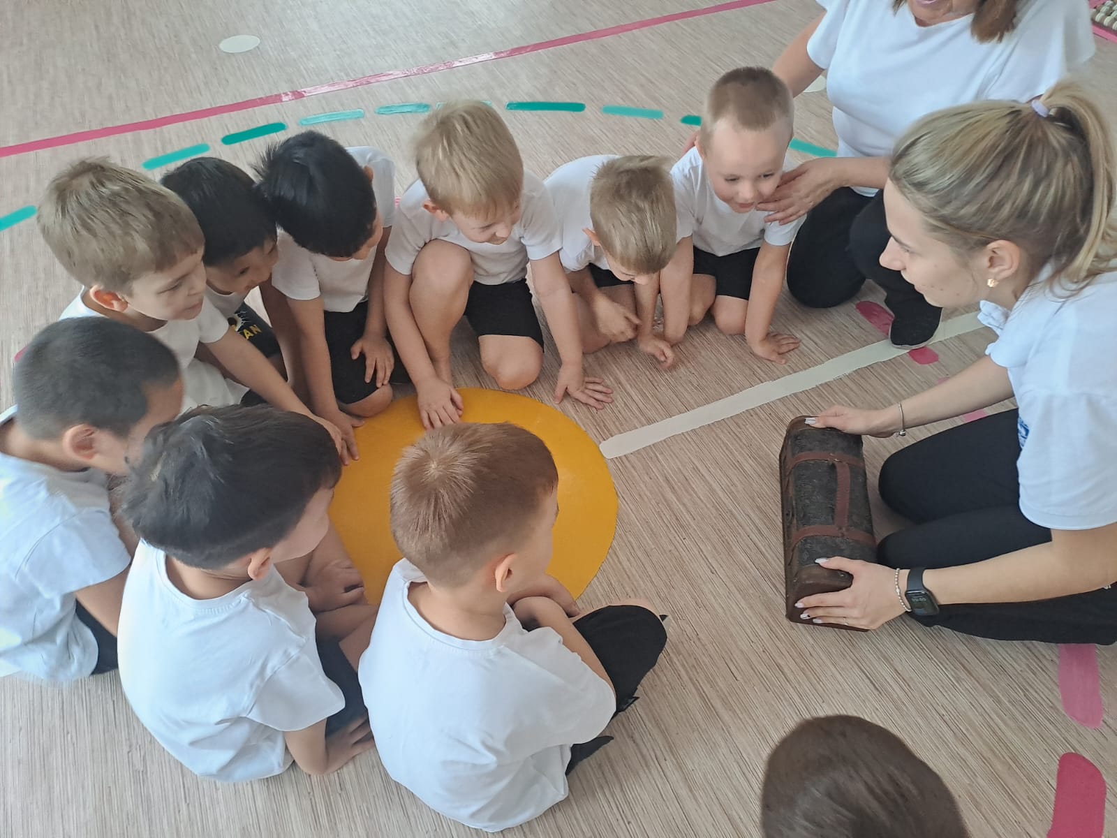 Гимнастикадан кейін балаларға квесттің бірінші кезеңі – «Әкел де, түсірме» эстафетасы ұсынылды. Онда балалар екі ағаш қасықтың көмегімен шарларды бір шелектен екінші шелекке, бір-бірден шарларды беру керек болды. Бұл бір қарағанда оңай емес болып шықты, бірақ балалар тапсырманы орындады.