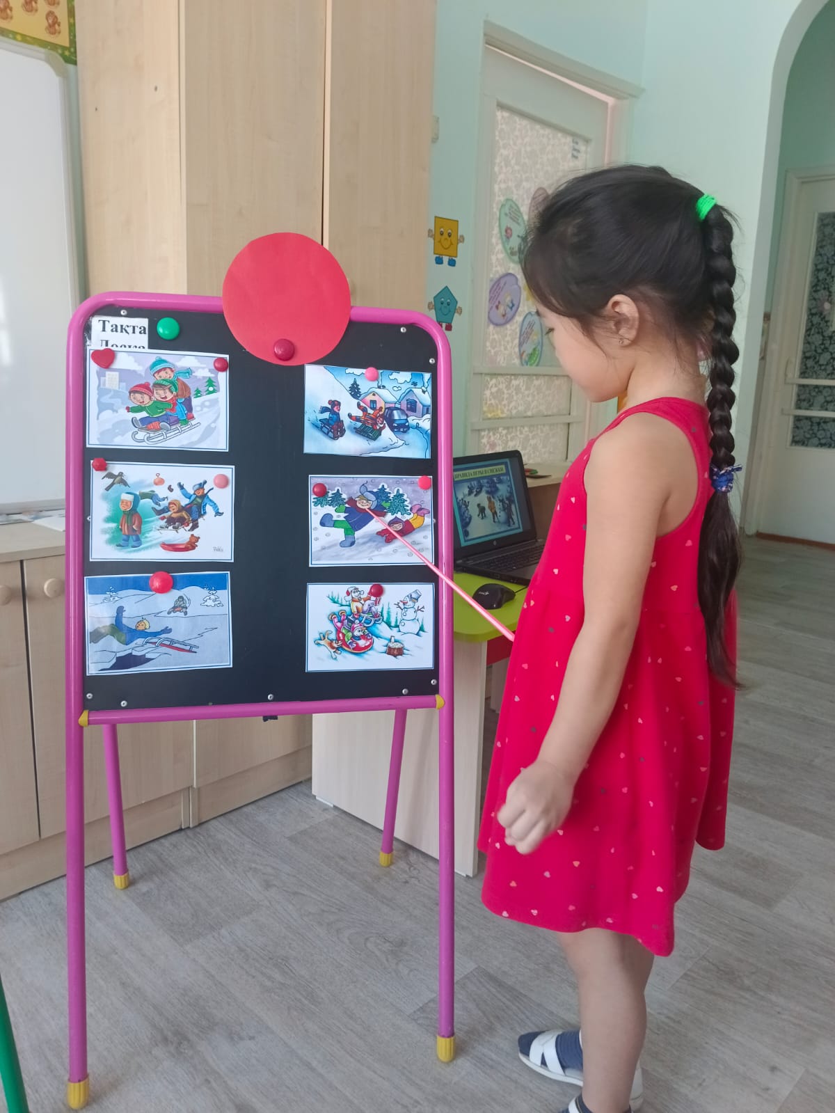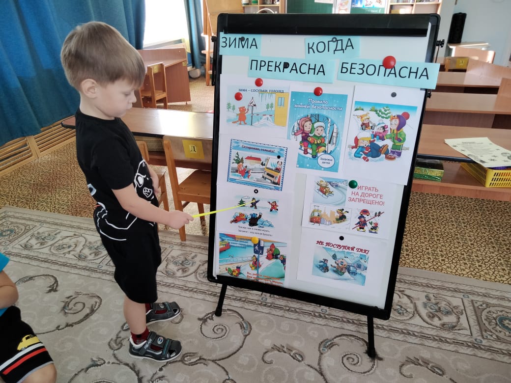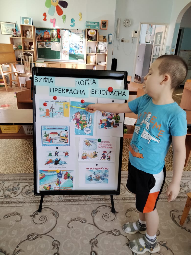 Қызықты саяхатта балалар суреттерді, суреттерді және иллюстрацияларды тамашалады. Балалардың қысқы ойындары туралы тақпақтар оқидық. Әңгімелесу: «Су айдындарында мұздың үстінде жүрме», «Тайғақ жерлерден аулақ бол», «Суықта металлды жалауға болмайды», «Абайлаңыз, мұз айдындары!»; дидактикалық және қозғалыс ойындары «Не қауіпті? «Кім қате істеді?», «Болады - болмайды», «Қиыншылықтан қалай құтылуға болады», «Қыс қауіпі» ережесін айтып бер. АКТ пайдаланылды – бейнекөрсетілім; танымдық мультфильмдер. Балалардың интеллектуалдық және шығармашылық қабілеттеріне бағытталған түрлі тапсырмалар орындадық.