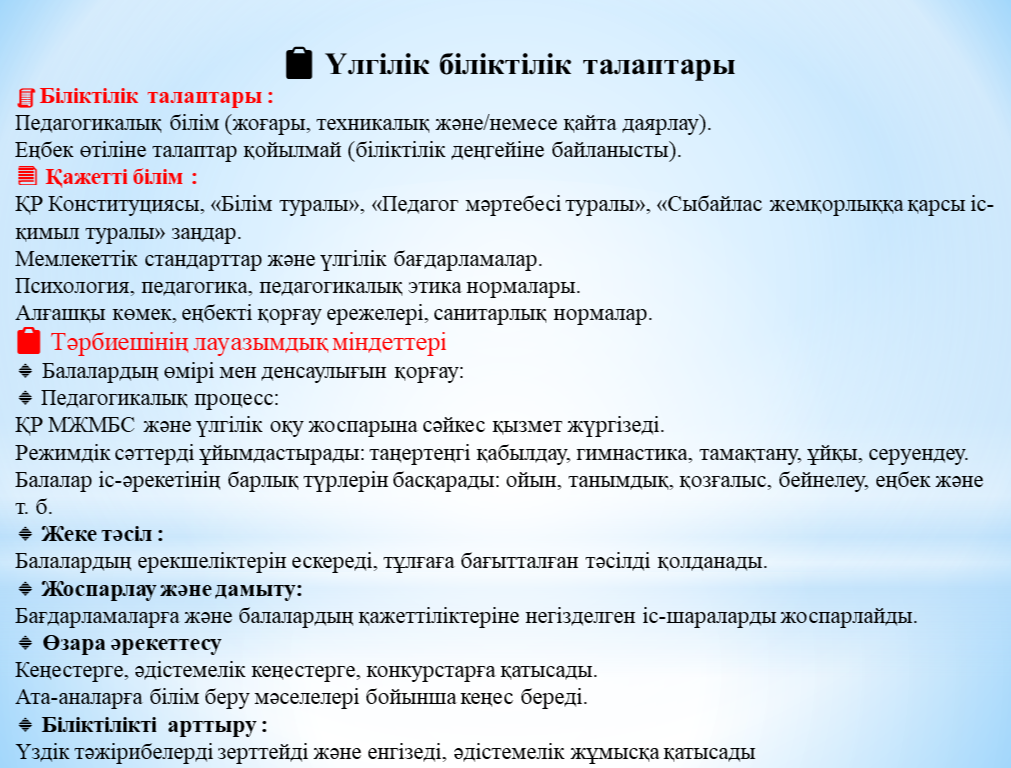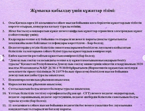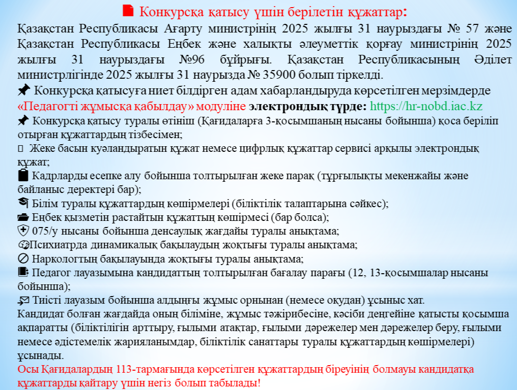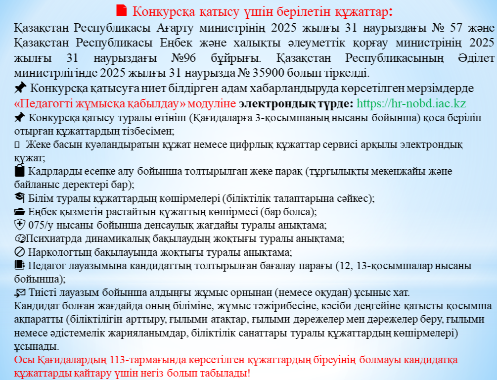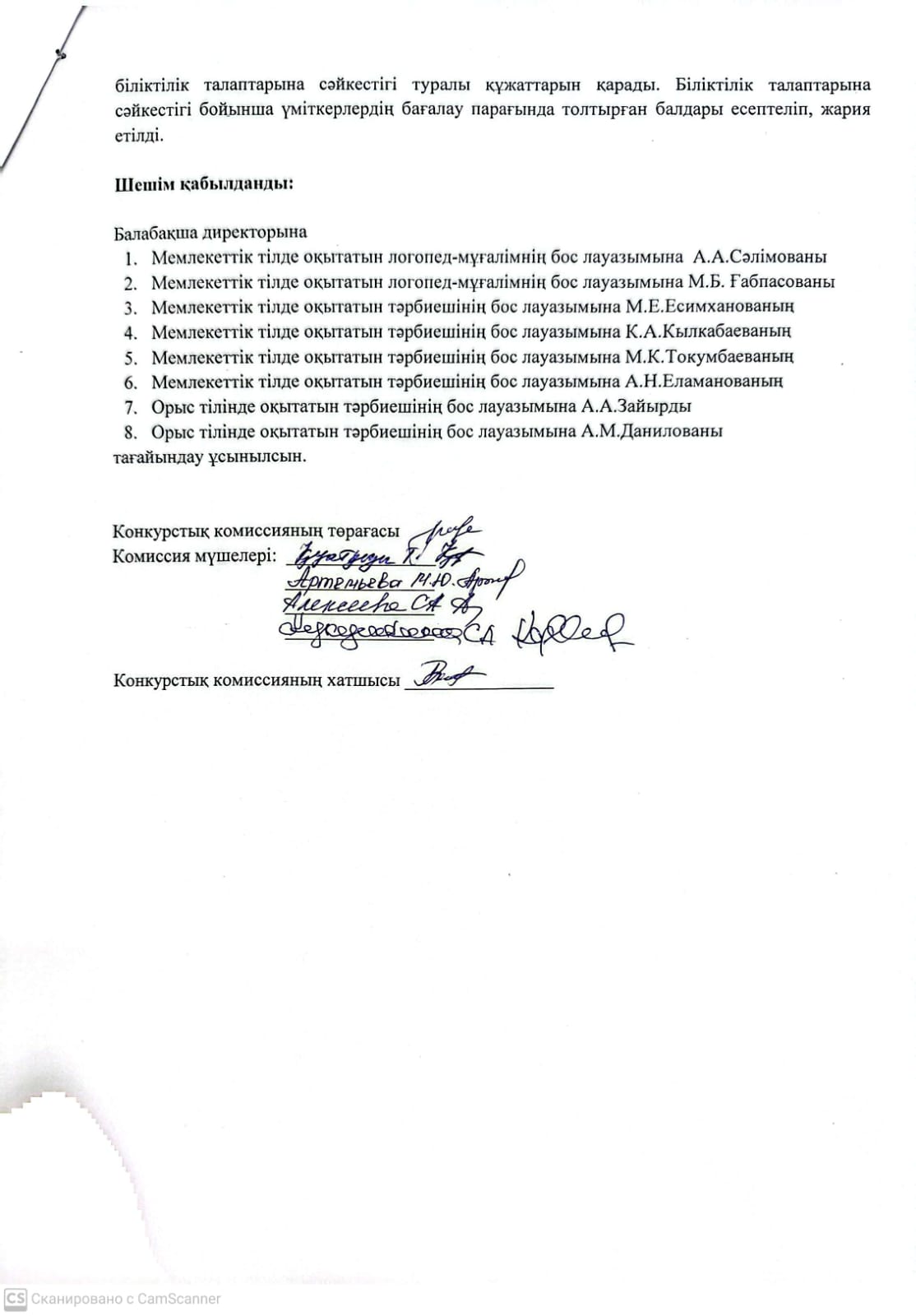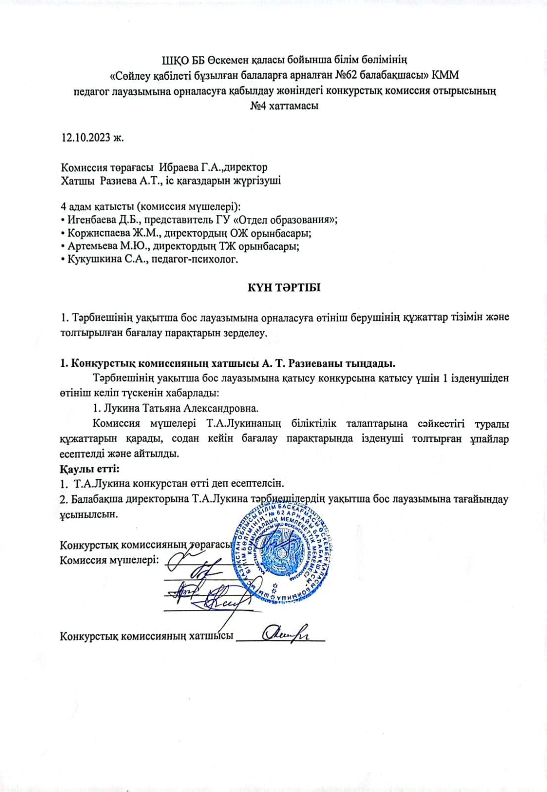 Өскемен қаласы әкімдігінің «Сөйлеу қабілеті бұзылған балаларға арналған № 62 балабақшасы» КММ директорының 2021 жылғы 22 қаңтардағы № 60 бұйрығымен ШҚО білім басқармасы Өскемен қаласы бойынша білім бөлімінің «Сөйлеу қабілеті бұзылған балаларға арналған № 62 балабақшасы» КММ директоры лауазымында жұмысын жалғастырушы болып есептелсін. Директор Ибраева Гульден Ахметкалиевна 2 жоғары білімі бар («Музыка және ән мұғалімі, әдіскер, тәрбиеші», ШҚМУ «Дефектология»), жұмыс өтілі 26 жыл, аталған мекемеде 6 жыл.