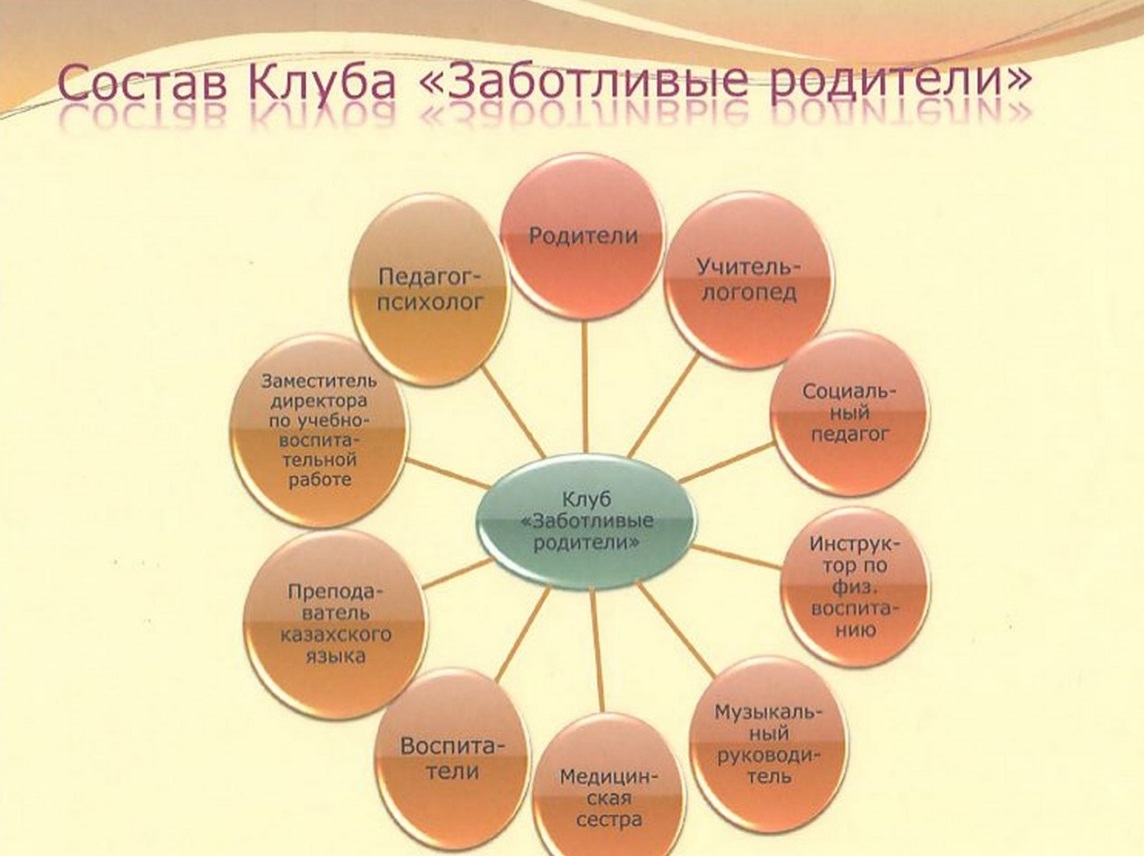 Клубтың құрамына тек ата-аналар мен тәрбиешілер ғана емес, сонымен қатар логопедтер, тар мамандар, балабақшаның медициналық қызметкерлері де кіреді.