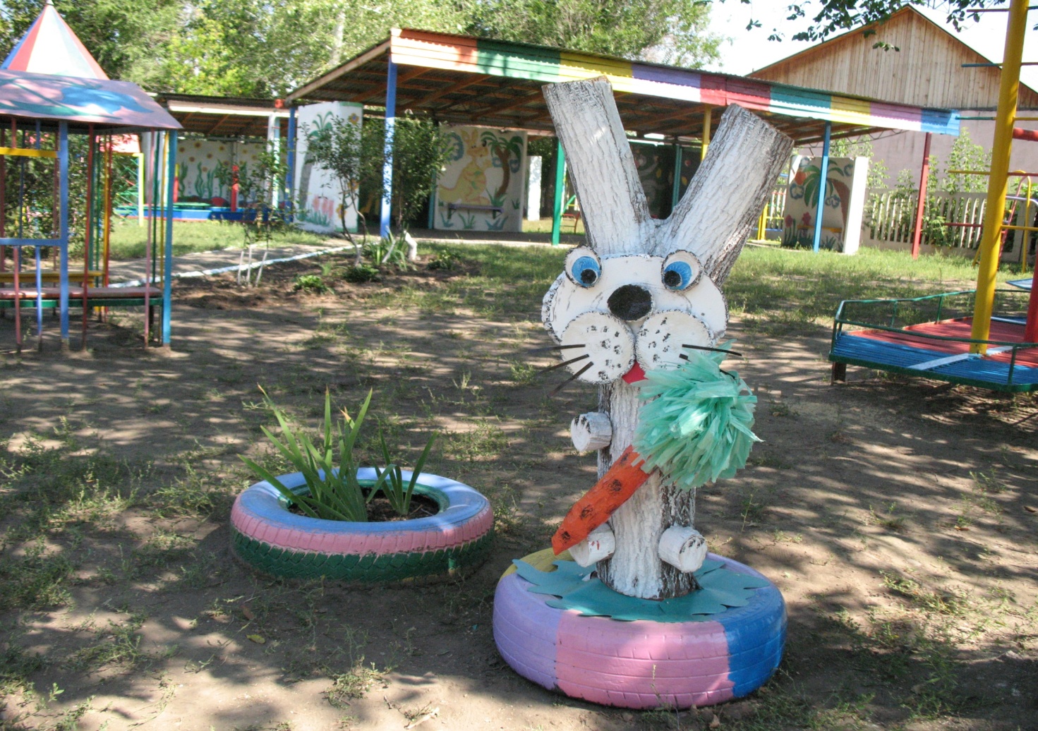 Балабақша аумағында топтар саны бойынша жабық верандалармен және шағын сәулет нысандарымен жабдықталған учаскелер орналасқан. Әр веранда жеке стильде безендірілген.