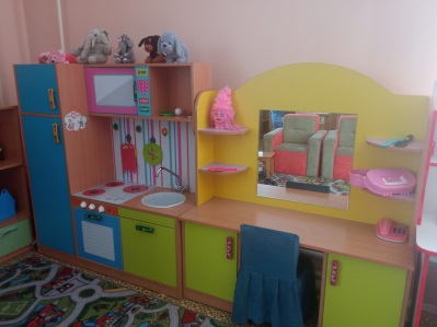 Әр топта заманауи жабдықтармен және әртүрлі дидактикалық материалдармен жабдықталған логопед кабинеті бар. Жатын бөлмелер топтағы балалар санына сәйкес көп деңгейлі кереуеттермен жабдықталған, тығыз, жарық өткізбейтін матадан жасалған перделер тәрбиеленушілерге күндізгі ұйқы кезінде жақсы демалуды қамтамасыз етеді. Барлық топтардағы жиһаз СанЕмн талаптарына сәйкес балалардың бойы мен салмағын ескере отырып таңдалады.