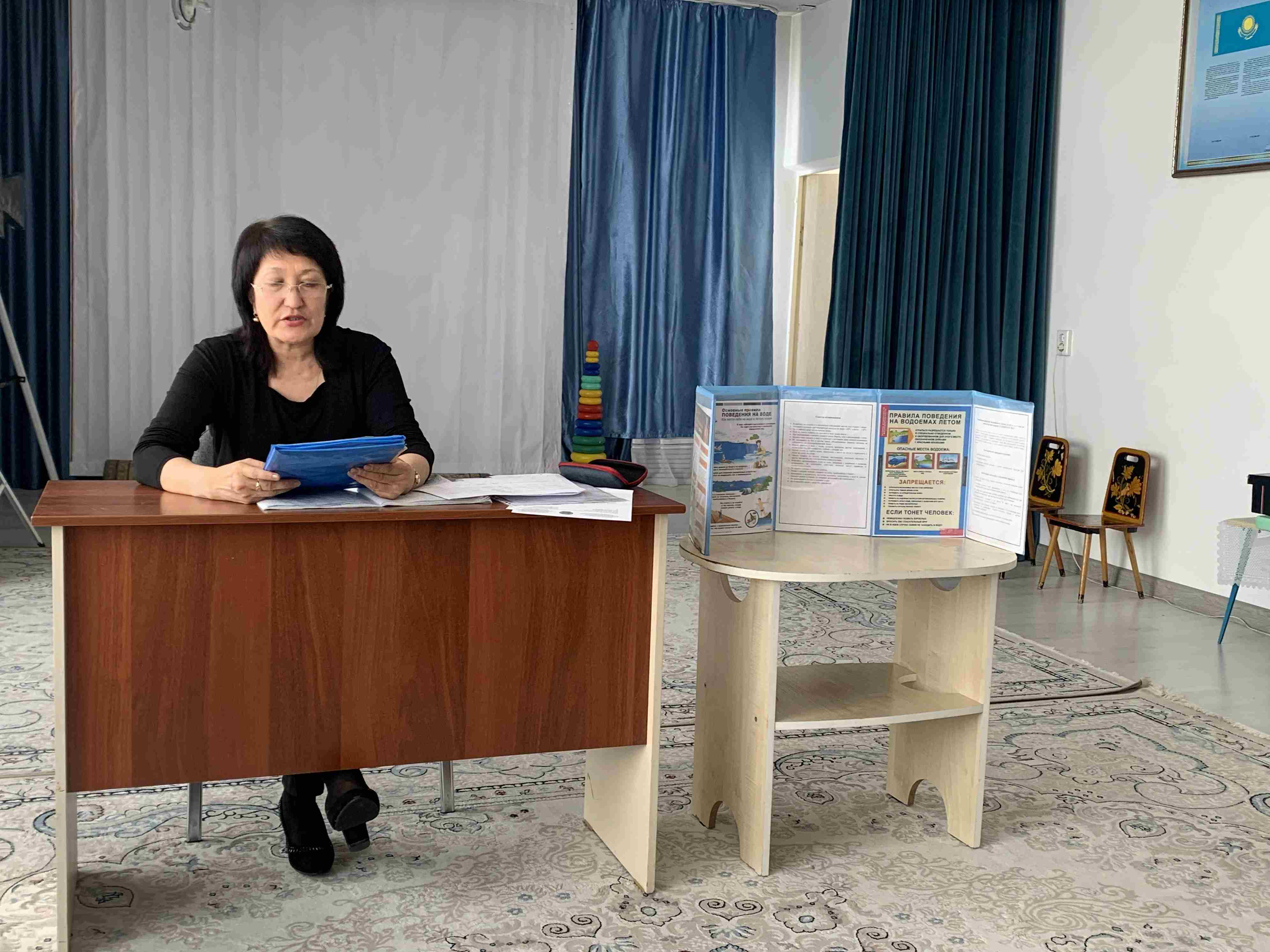 В КГУ «Детский сад № 62 для детей с нарушениями речи» отдела образования по городу Усть-Каменогорску управления образования Восточно-Казахстанской области с сотрудниками была проведена разъяснительная работа в целях обеспечения должного уровня защиты населения от несчастных случаев на воде и повышения уровня безопасности во время купального сезона. Разработали и раздали памятки сотрудникам. Также разместили информацию в буклетах на информационном стенде и на сайте детского сада.