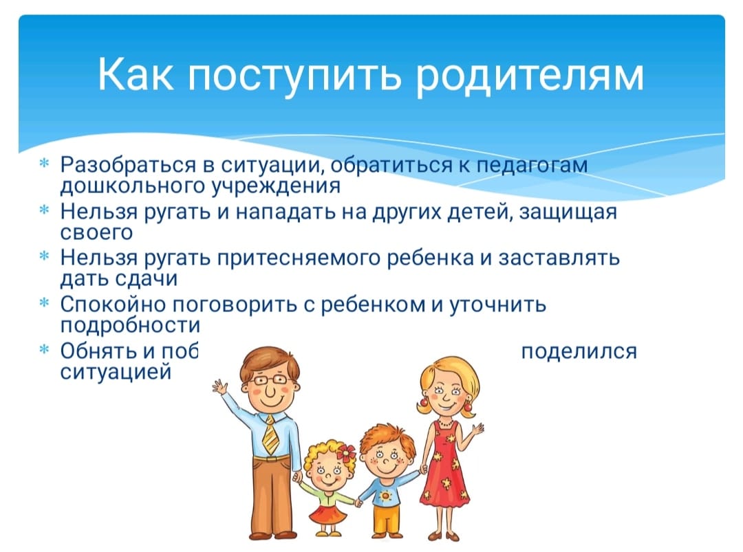 3. 27.02.2024года 14.00 часов с родителями воспитанников детского сада №62 психологом Кукушкиной С.А. на онлайн-платфоме ZOOM была проведена беседа и предоставлена презентация на тему: «Что такое буллинг и как с ним бороться». Были даны ответы на вопросы родителей.