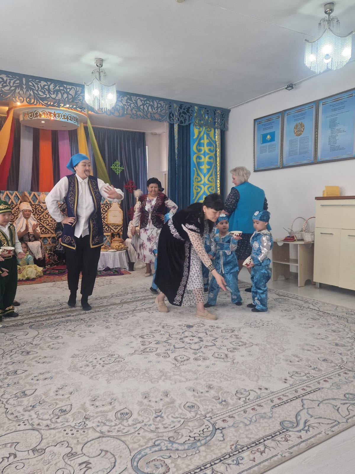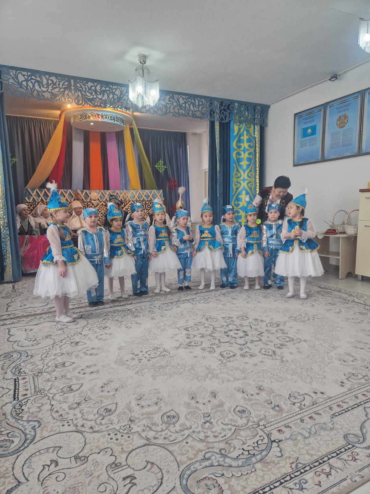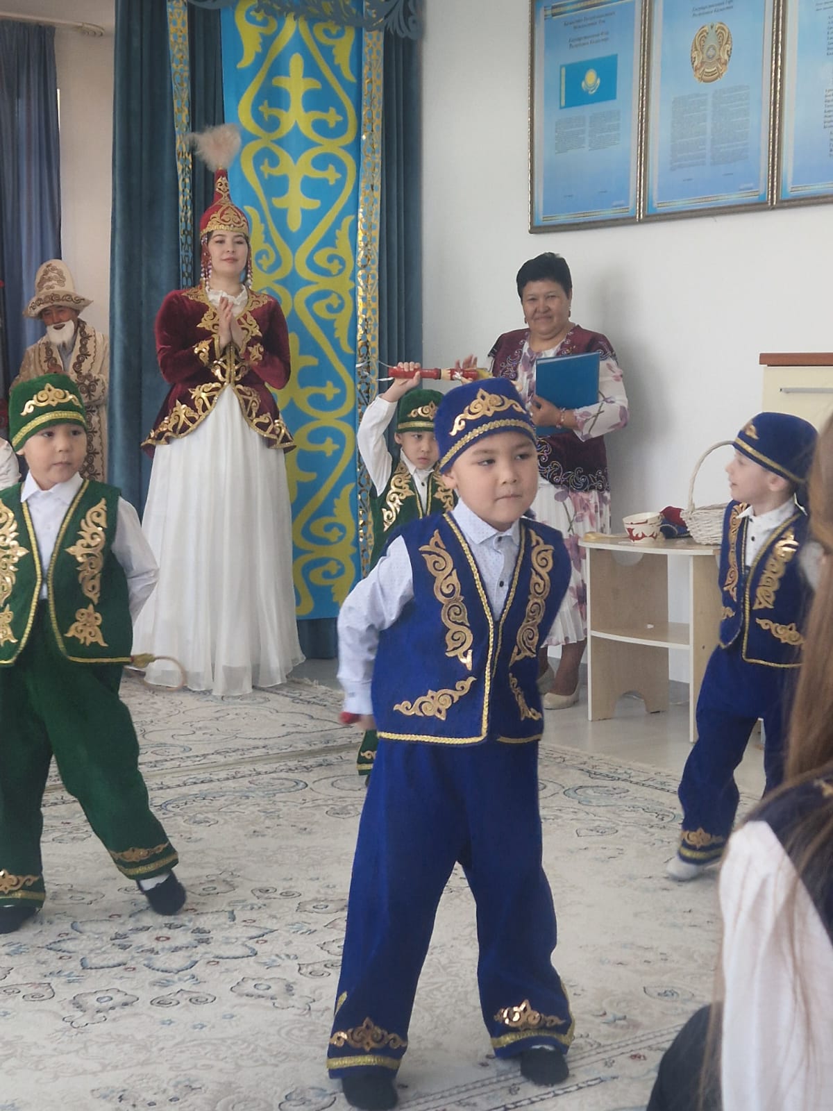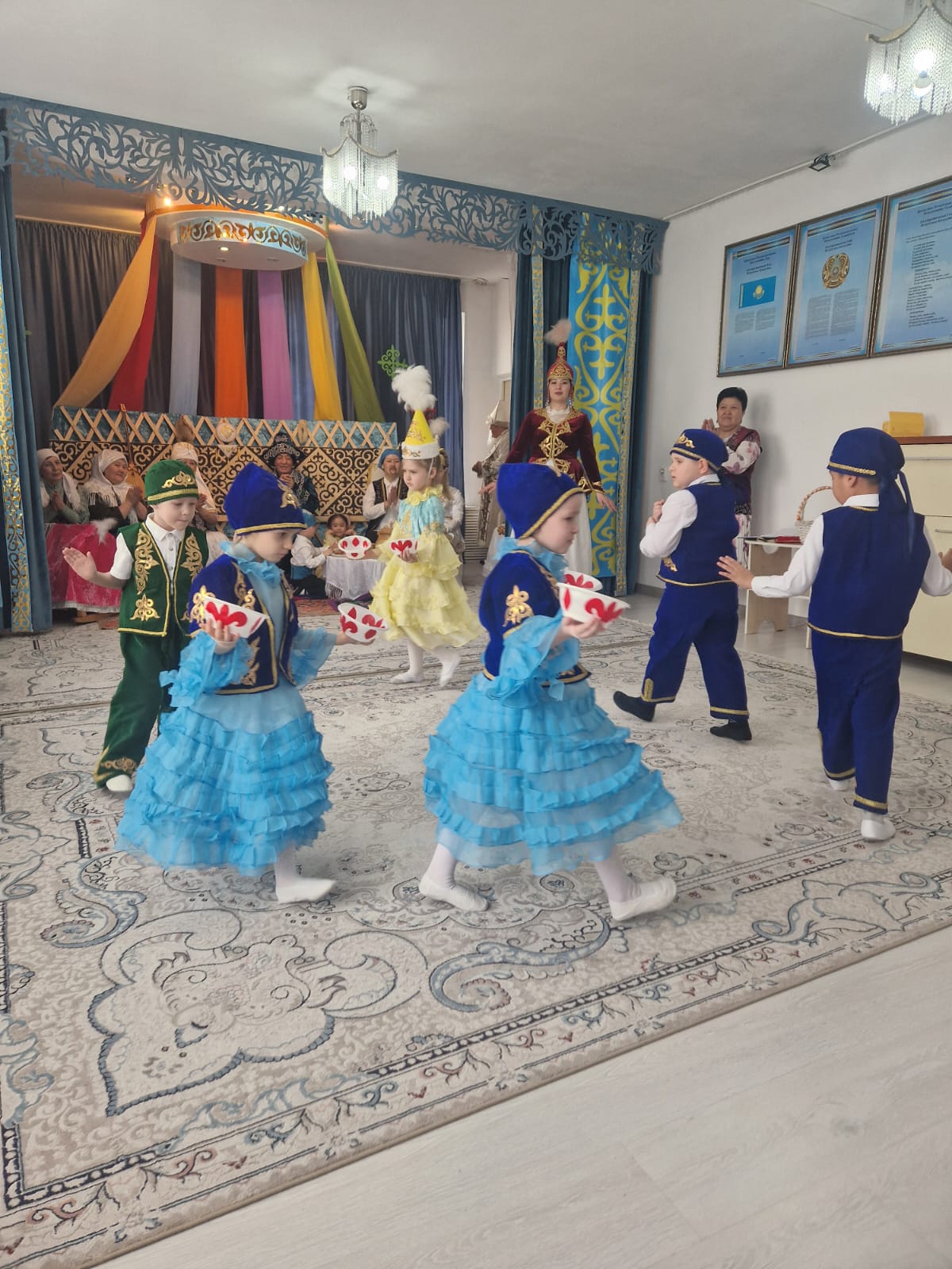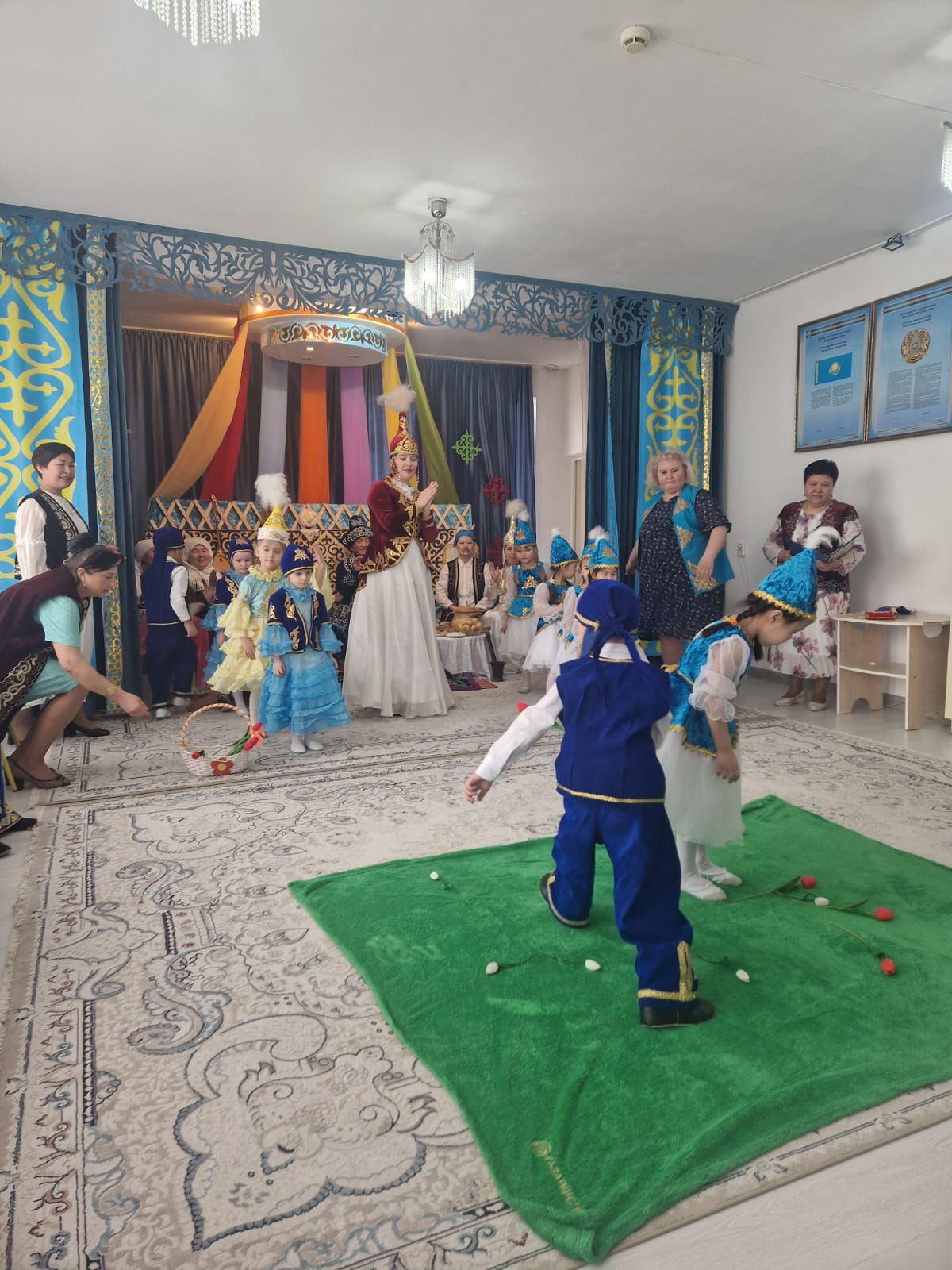 Наурыз-праздник весны, равноденствия, обновления природы. Наурыз-начало года. Наурыз для стран Востока – это праздник единства, мира, труда, весны, добра, счастья. Следуя традициям казахского народа на мероприятии звучали песни, стихи и танцы в исполнении воспитанников. Были проведены обряды «Шаш өру дәстүрі», «Бесікке салу» «Тұсау кесу» с соблюдением всех правил. Проводились национальные игры «Тенге алу», «Арқан тарту», «Гүл теру». В дни празднования Наурыза на мероприятии был накрыт дастархан, который символизировал достаток и изобилие в доме. Соблюдая традиции, на мероприятии звучали бата (благословения) от Кыдыр ата. В гостях на данном мероприятии были родители, сотрудники детского сада