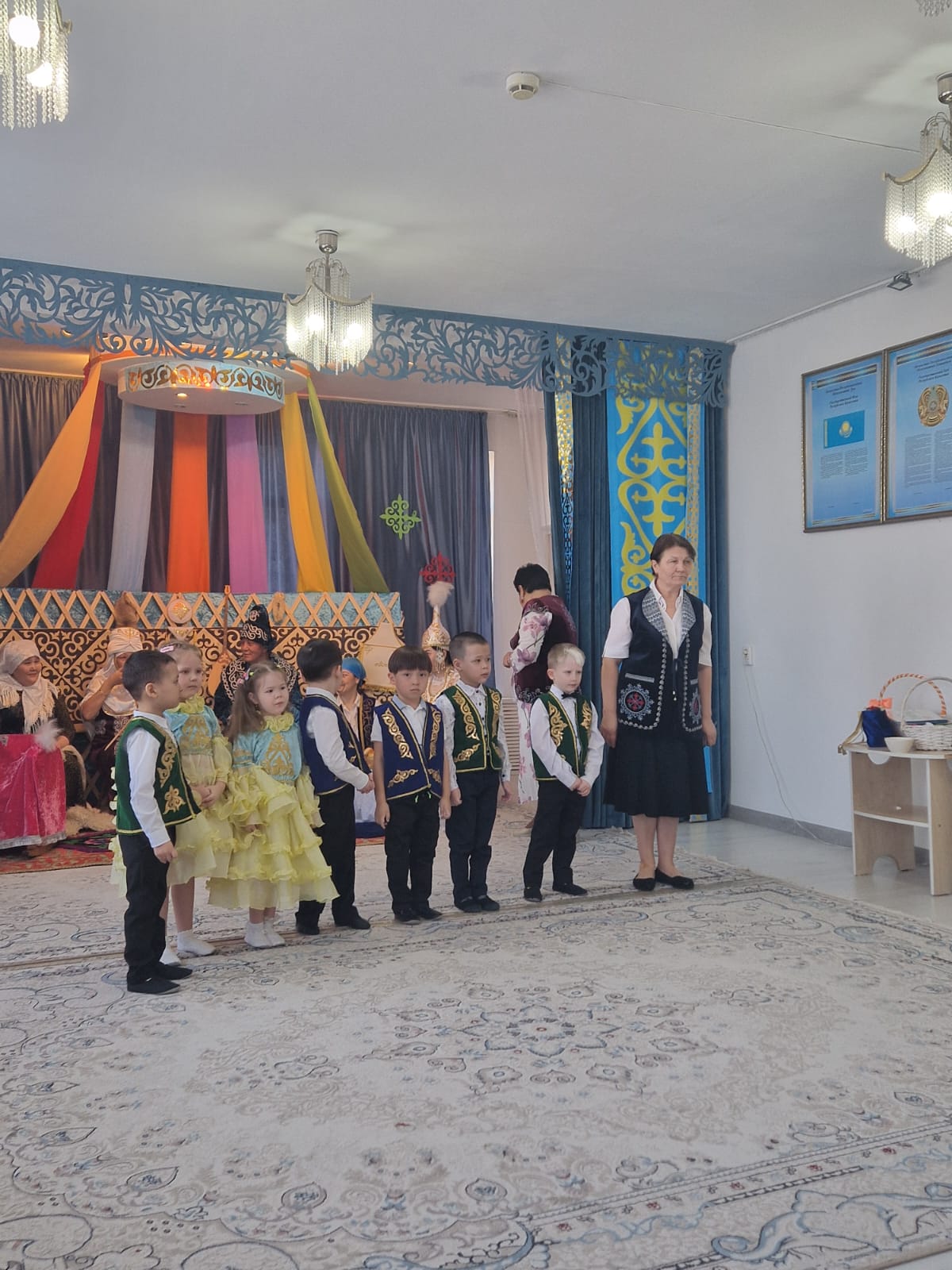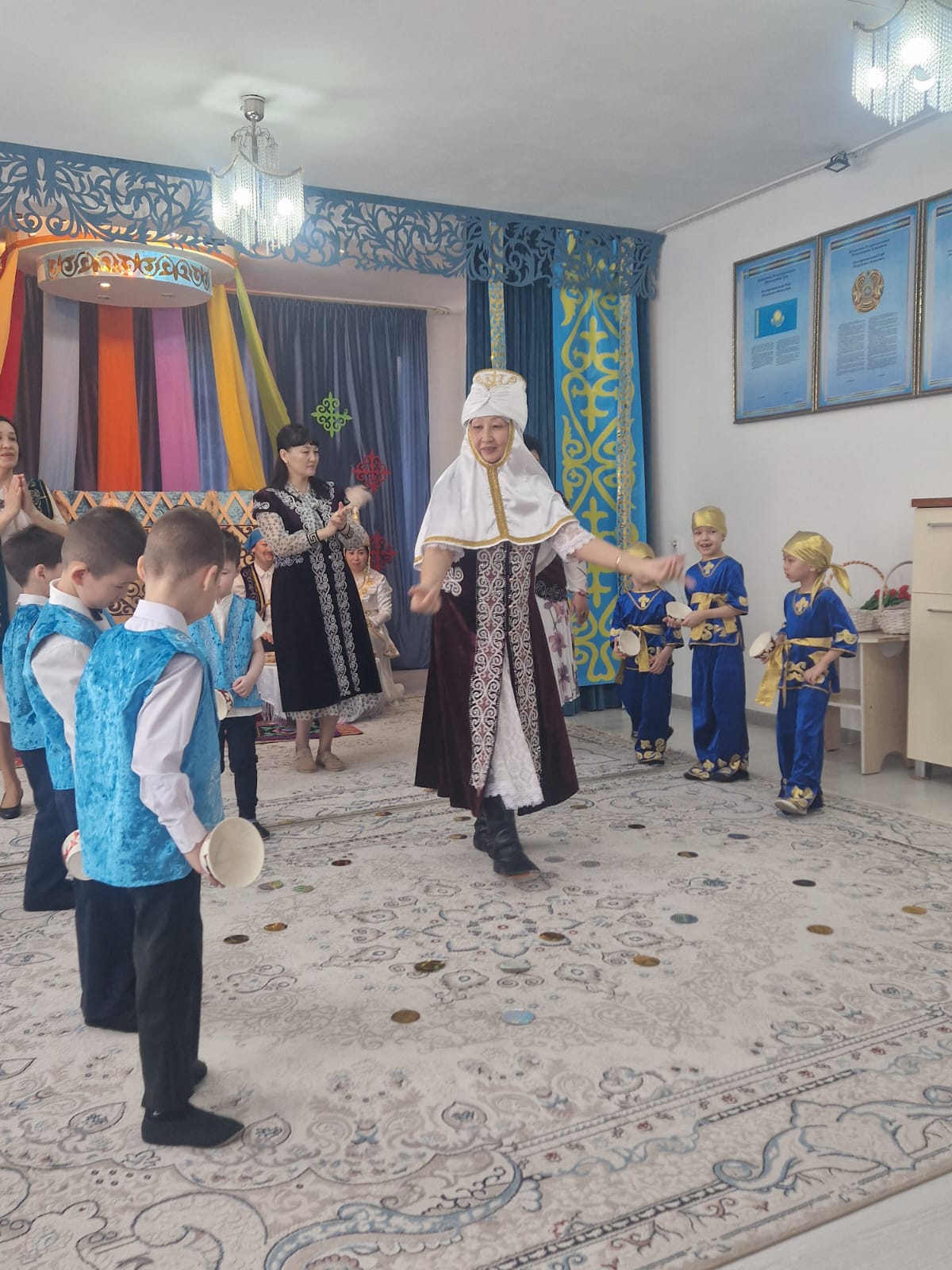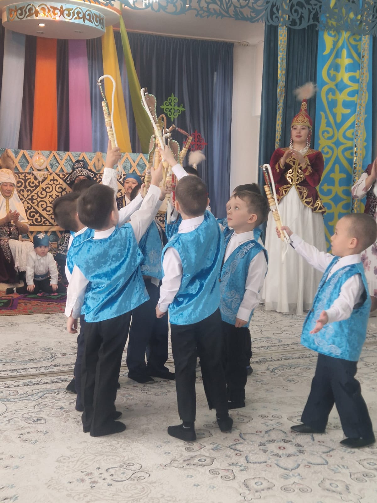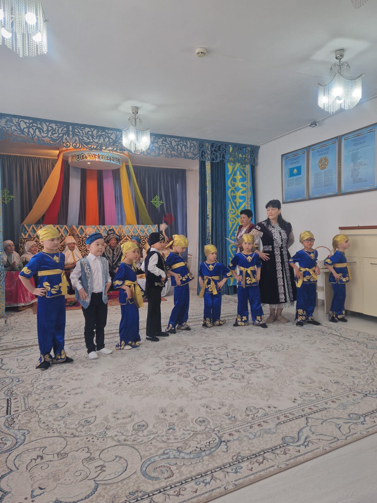 Наурыз-праздник весны, равноденствия, обновления природы. Наурыз-начало года. Наурыз для стран Востока – это праздник единства, мира, труда, весны, добра, счастья. Следуя традициям казахского народа на мероприятии звучали песни, стихи и танцы в исполнении воспитанников. Были проведены обряды «Шаш өру дәстүрі», «Бесікке салу» «Тұсау кесу» с соблюдением всех правил. Проводились национальные игры «Тенге алу», «Арқан тарту», «Гүл теру». В дни празднования Наурыза на мероприятии был накрыт дастархан, который символизировал достаток и изобилие в доме. Соблюдая традиции, на мероприятии звучали бата (благословения) от Кыдыр ата. В гостях на данном мероприятии были родители, сотрудники детского сада