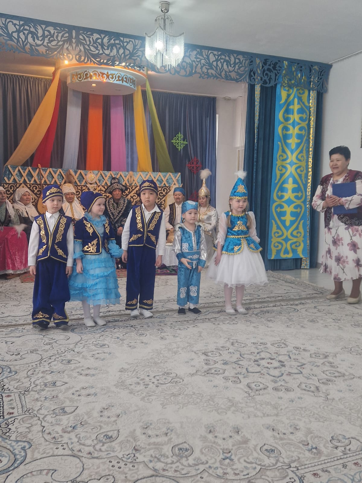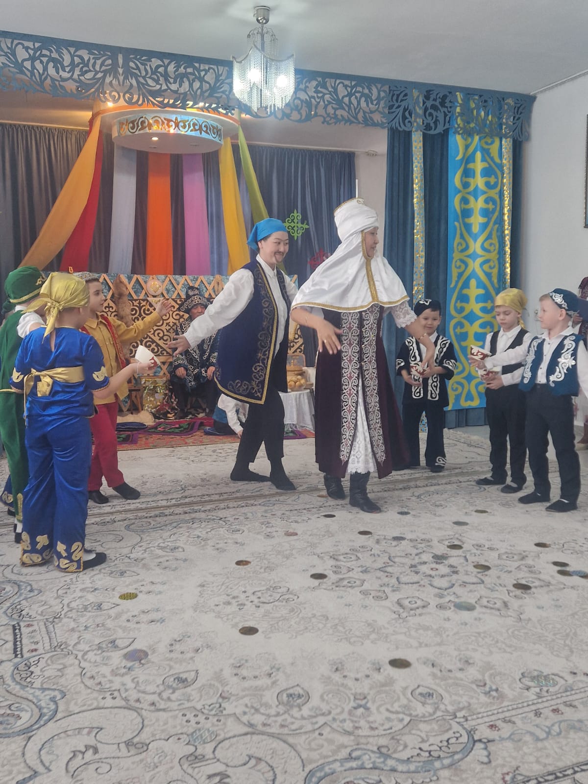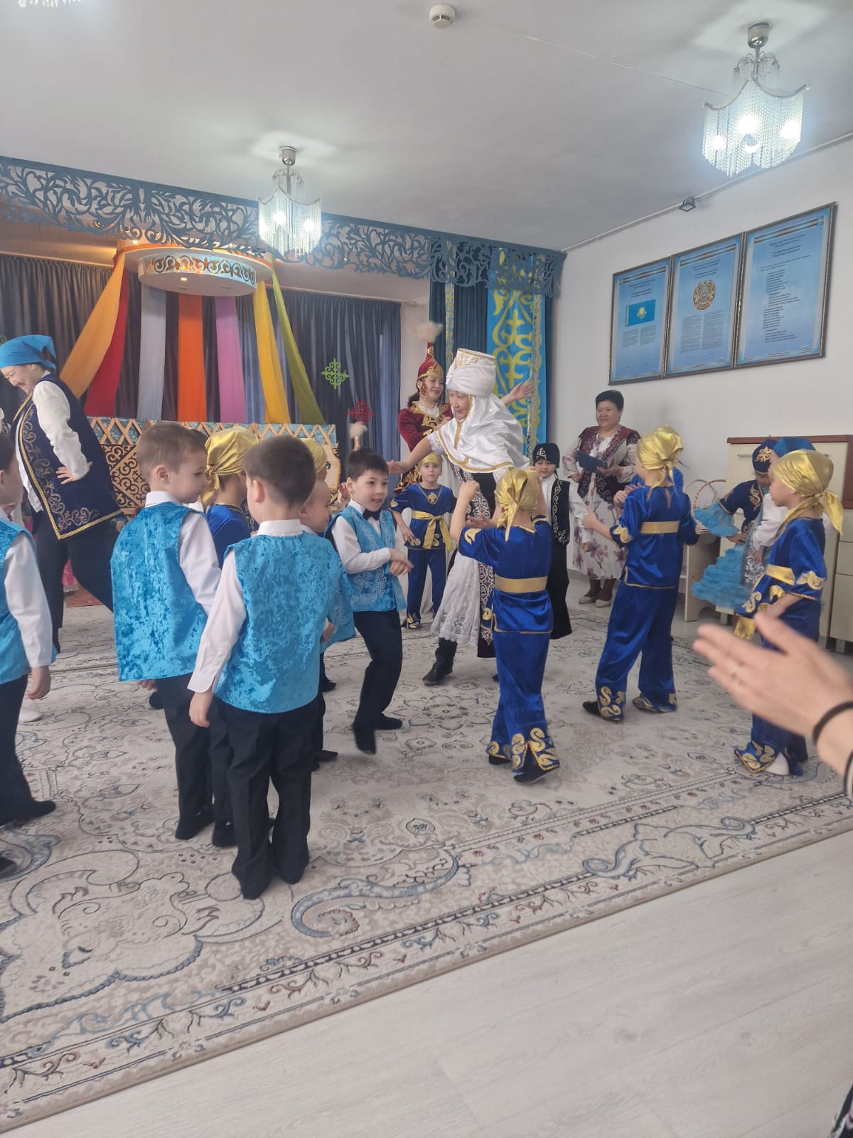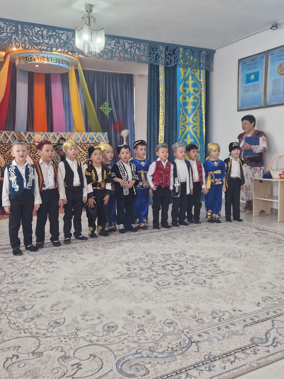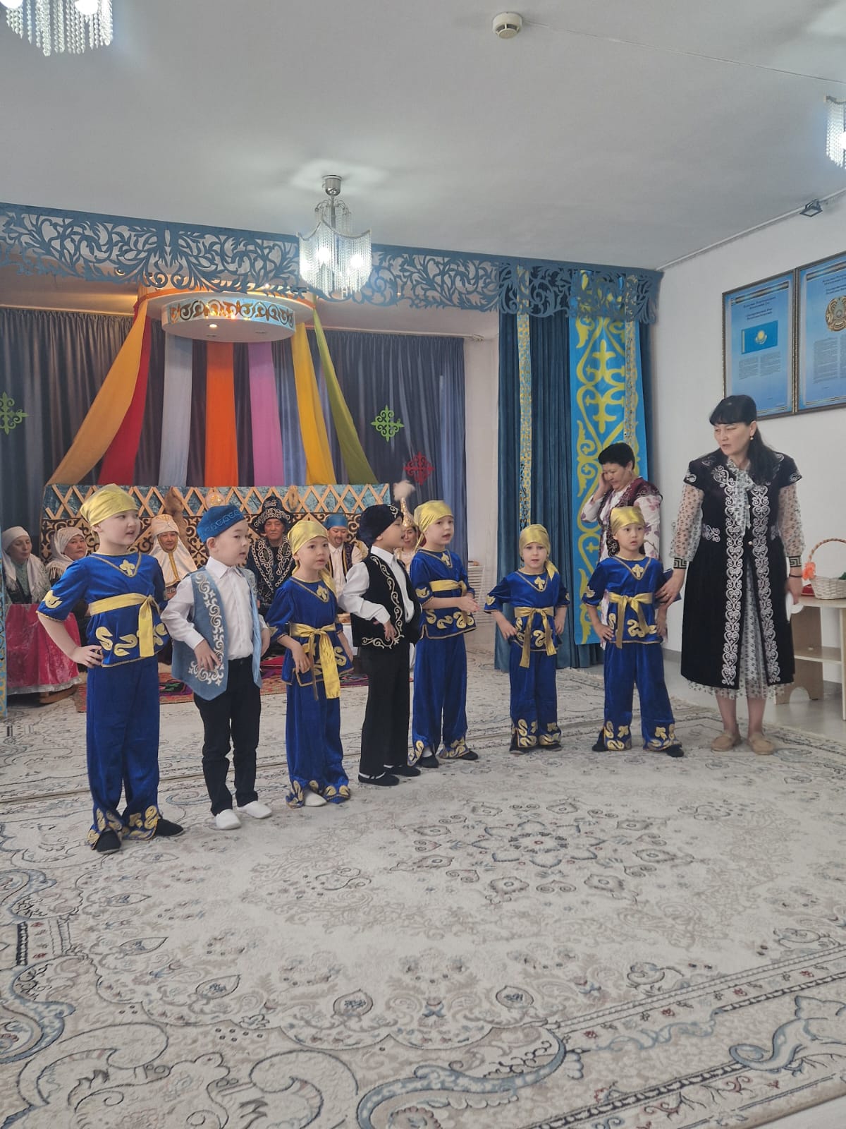 Наурыз-праздник весны, равноденствия, обновления природы. Наурыз-начало года. Наурыз для стран Востока – это праздник единства, мира, труда, весны, добра, счастья. Следуя традициям казахского народа на мероприятии звучали песни, стихи и танцы в исполнении воспитанников. Были проведены обряды «Шаш өру дәстүрі», «Бесікке салу» «Тұсау кесу» с соблюдением всех правил. Проводились национальные игры «Тенге алу», «Арқан тарту», «Гүл теру». В дни празднования Наурыза на мероприятии был накрыт дастархан, который символизировал достаток и изобилие в доме. Соблюдая традиции, на мероприятии звучали бата (благословения) от Кыдыр ата. В гостях на данном мероприятии были родители, сотрудники детского сада
