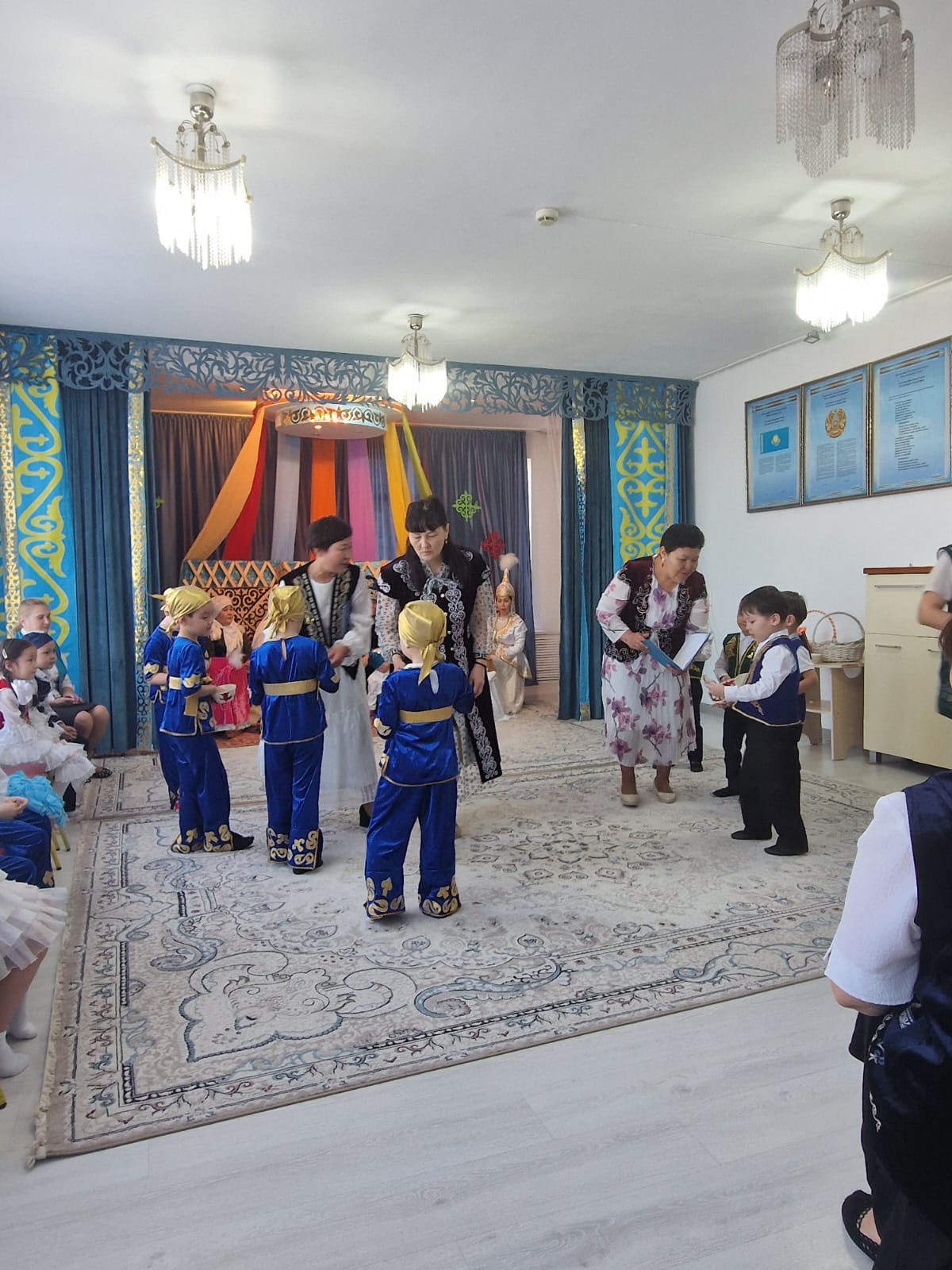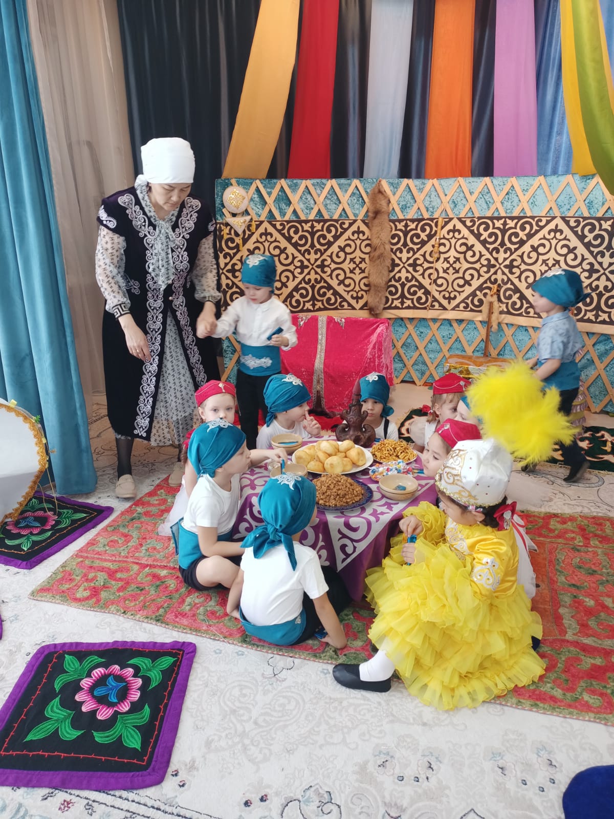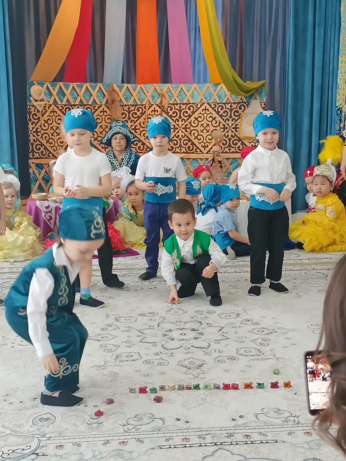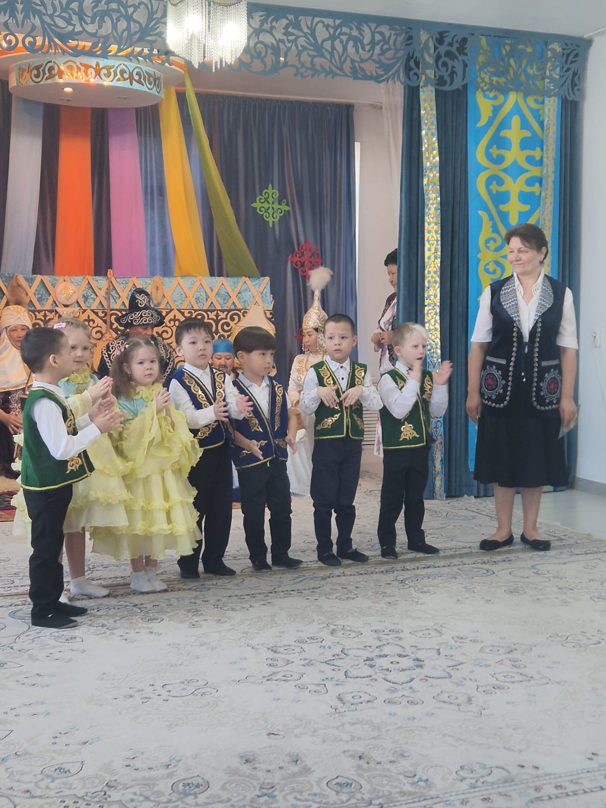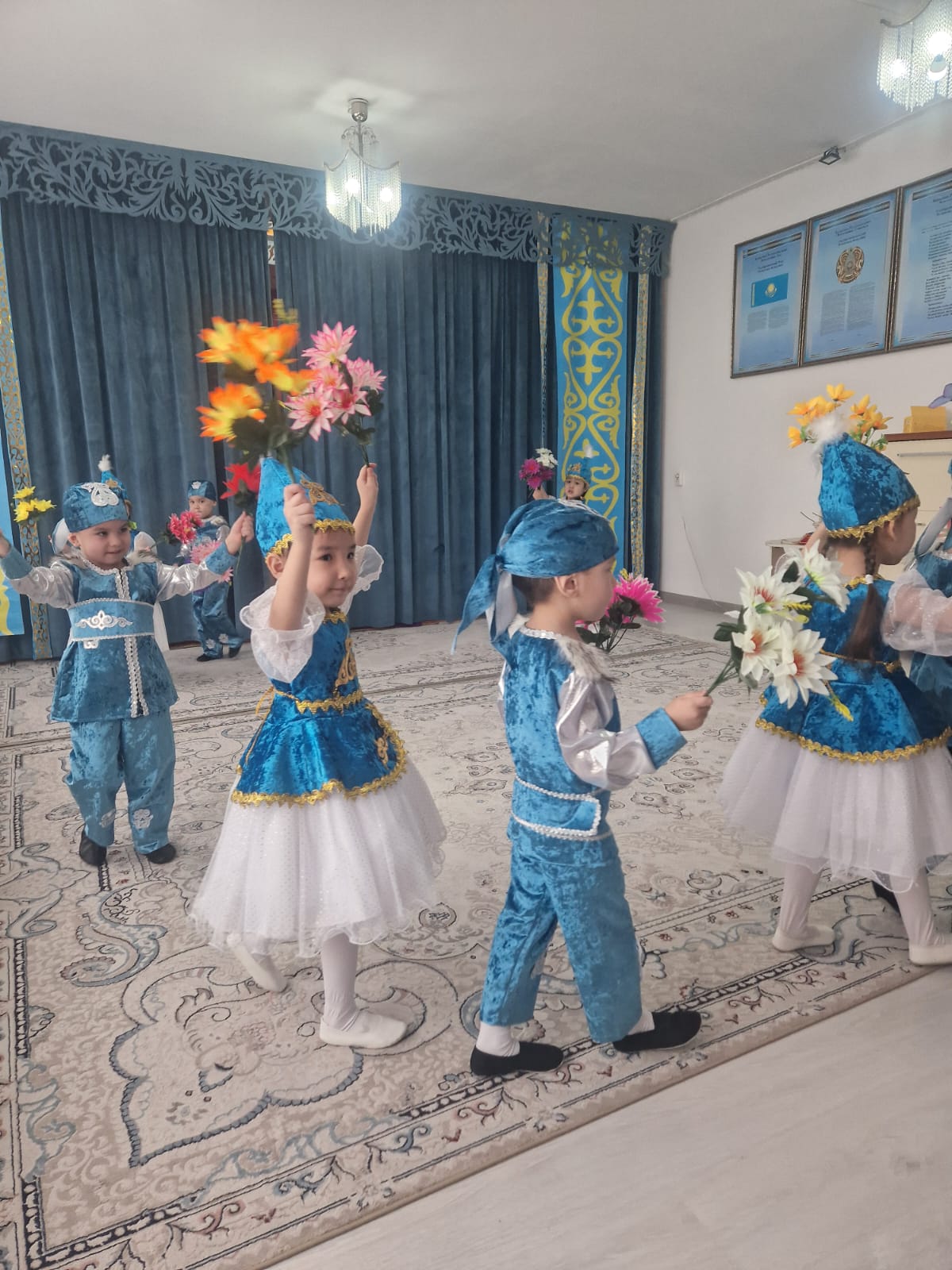 Наурыз-праздник весны, равноденствия, обновления природы. Наурыз-начало года. Наурыз для стран Востока – это праздник единства, мира, труда, весны, добра, счастья. Следуя традициям казахского народа на мероприятии звучали песни, стихи и танцы в исполнении воспитанников. Были проведены обряды «Шаш өру дәстүрі», «Бесікке салу» «Тұсау кесу» с соблюдением всех правил. Проводились национальные игры «Тенге алу», «Арқан тарту», «Гүл теру». В дни празднования Наурыза на мероприятии был накрыт дастархан, который символизировал достаток и изобилие в доме. Соблюдая традиции, на мероприятии звучали бата (благословения) от Кыдыр ата. В гостях на данном мероприятии были родители, сотрудники детского сада