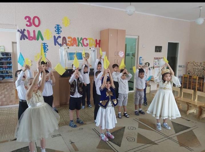 В канун празднования праздника 30-летия Дня Независимости Республики Казахстан в детском саду № 62 для детей с нарушениями речи, в целях воспитания чувства патриотизма, любви к Родине, гордости за историческое прошлое, настоящее и светлое будущее народа Казахстана проведен ряд мероприятий: тематические занятия, беседы, просмотр презентаций и видеороликов.Воспитанники пополнили новыми экспонатами музей «Рухани жаңғыру», была организована выставка рисунков «Моя Родина Казахстан», конкурс чтецов «Мен кішкентай патриотпын», итоговый онлайн-концерт «Славлю тебя мой Казахстан!».